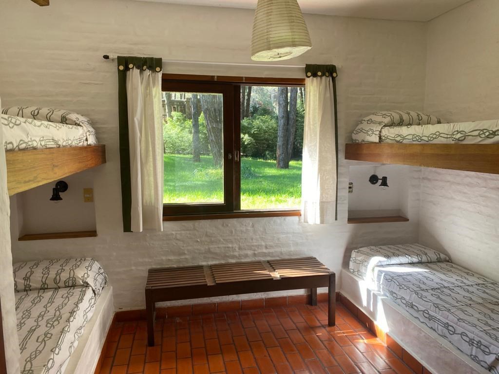Alquiler Temporario disponible, se alquila semana santa, vacaciones, fines de semana, todo el año. Consulta precio dependiendo la época del año Todos los gastos incluídos, menos la limpieza final. Capacidad para 12 personas. NO SE ACEPTAN MASCOTAS Usd 200 por dia en temporada baja Consultar valor en temporada media y alta Quincena Diciembre usd 4000 Quincena Enero usd 4700 Quincena Febrero usd 3000 Deposito de Garantía 30% Lindísima casa ubicada en unas de las mejores zonas de cariló, ya que se encuentra a una cuadra del tennis ranch y a 3 cuadras del centro comercial. Casa tradicional sobre un lote arbolado de 900 mts y 300 mt construídos. Excelente nivel de constructivo por el estudio Claria&Claria Arquitectos, totalmente renovada a nueva en el interior. Hall de distribución, living amplio con ventanal que se acoplan y se integra a la galería, comedor con muy linda vista al bosque, una lindisima chimenea abierta hacia ambos ambientes. Cocina con 2 heladeras, lavadero con salida independiente con lavarropas. Suite Junior con 2 camas cuchetas o también se puede utilizar como dependencias con baño con ducha, Suite principal con baño completo con ducha. De la Suite principal se accede a una terraza. Altillo que balconea al living con 2 camas individuales En PB hay 3 dormitorios que comparten un baño completo con bañadera ( uno de los dormitorios tiene 2 camas individuales de 0.90 cm de ancho que se pueden convertir en cama matrimonial, en el otro son 4 cuchetas, y el 3er dormitorio con 2 sommiers de 0.90 cm individuales que se pueden convertir en una matrimonial Gran Galería con parrilla, en altura con espectacular vista al bosque. Cochera techada para 1 auto y espacio para 3 autos más Alarma, WIFI 2 TV, Agua Caliente por termotanque de 160 lt de alta recuperación, Calefacción por radiadores, caldera Peisa. Totalmente equipada