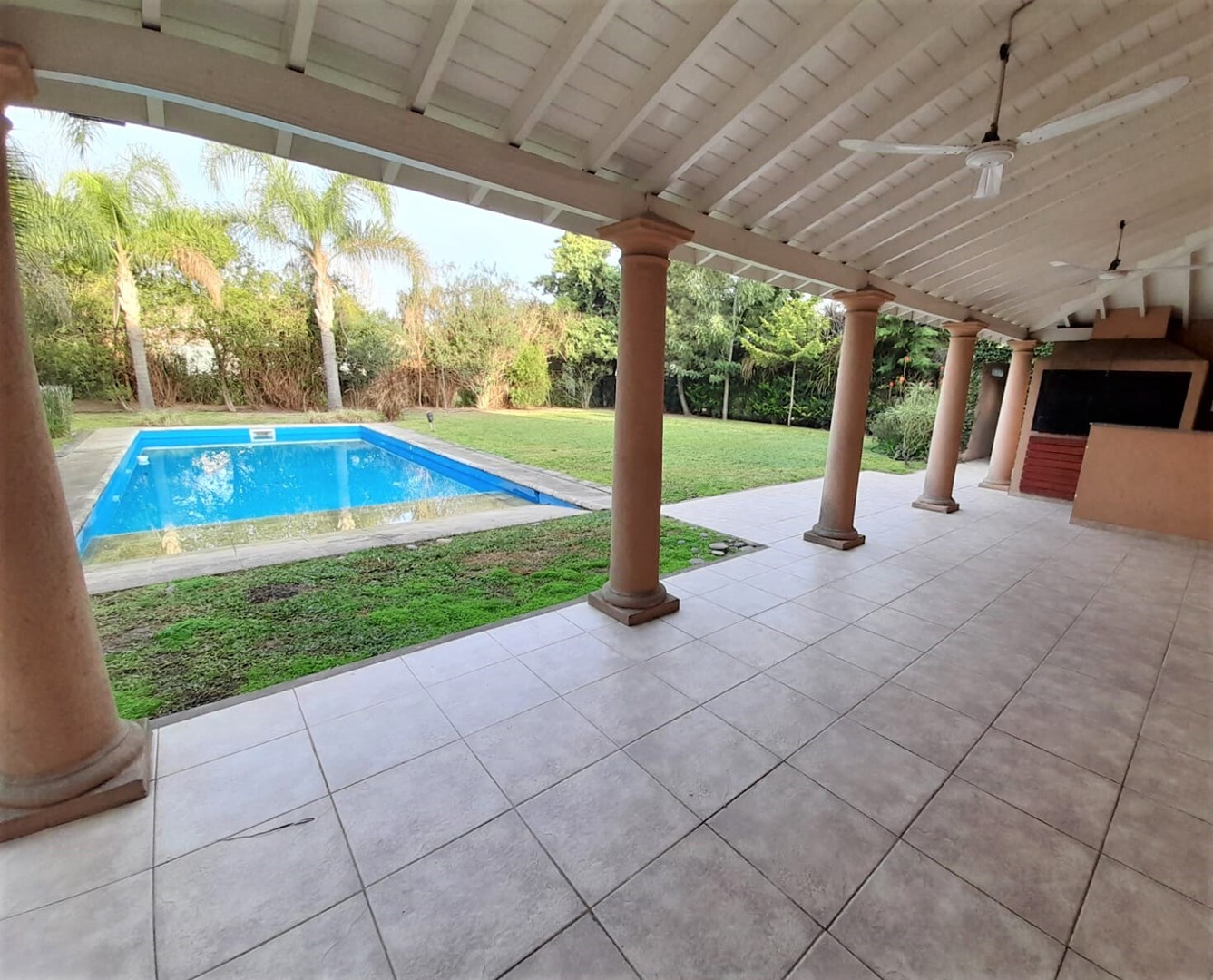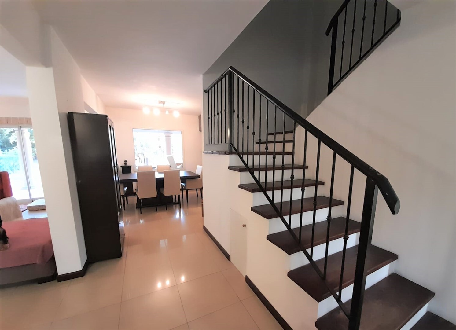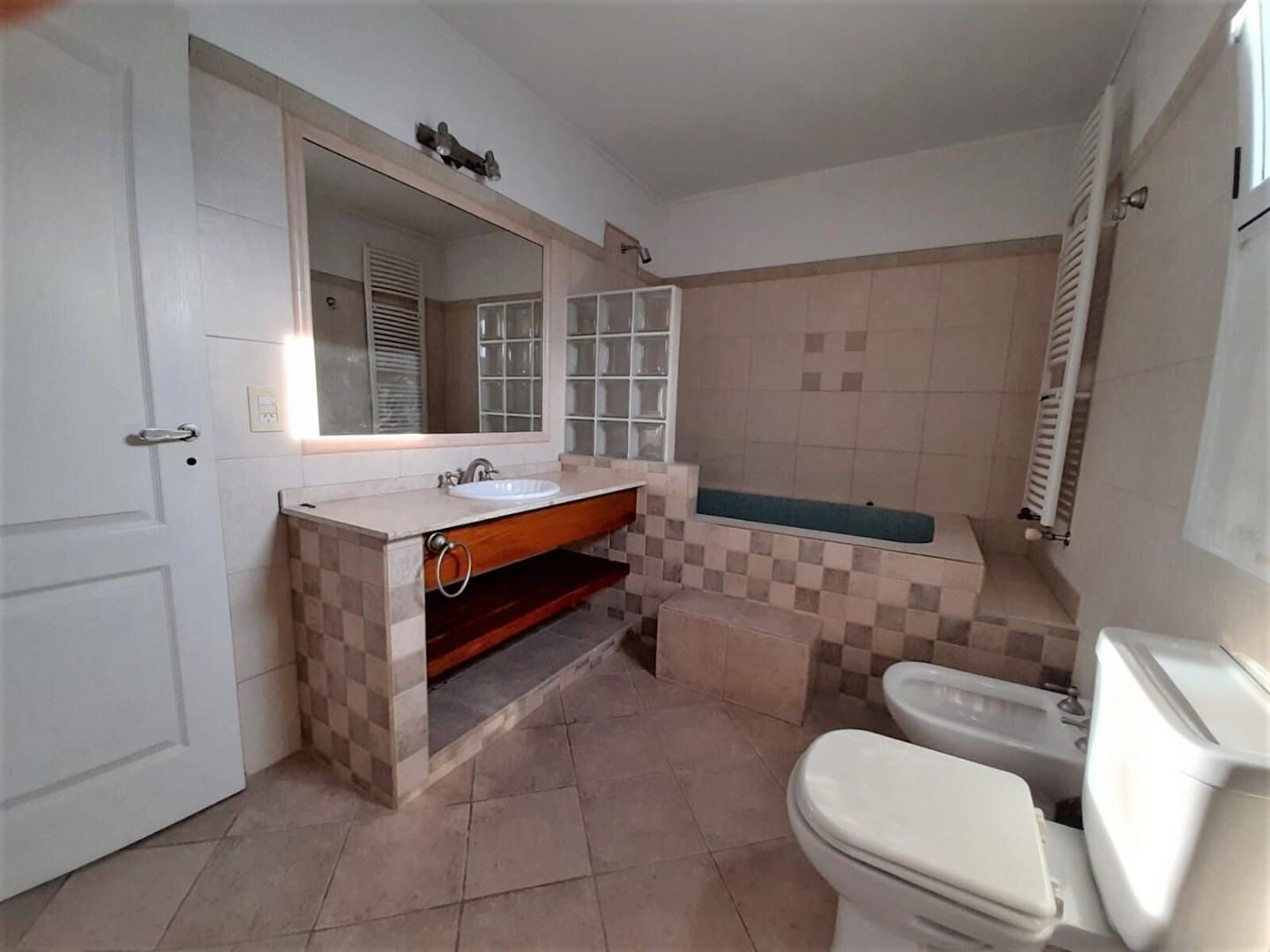 Casa en Alquiler en Talar del Lago 1. Cuatro dormitorios + playroom + Dependencia o habitacion de huespedes. Casa estilo portugués, construida sobre lote interno. Entrada embajadora adoquinada, 2 dos cocheras techadas a los lados de la casa. Living comedor, y comedor formal integrados, área para TV o escritorio abierto, Playroom amplio en planta baja, ideal para escritorio o home ofice, espacio de musica o cava de vinos, toilette, cocina, lavadero, dependencia grande con aire acondIcionado y placard, y baño de servicio acondicionado como habitacion de huespedes. Ventanales al jardín, galería con parrilla, pileta con filtro automático y riego. Cuarto/baulera grande para guardado de reposeras y herramientas. Muy bien parquizado el lote, muchas plantas que brindan intimidad. Arriba, Escalera de madera, con descanso, hall de distribución, cuatro dormitorios, el dormitorio principal, en suite con vestidor. Los otros dormitorios que comparten un baño. Incluye Luces, Cortinas, blackout y aires. Calefacción por radiadores. Bauleras interiores y cuarto de guardado exterior. Riego, Filtro automático. Caldera y Termotanque casi nuevos. El barrio cuenta con entrada directa al colegio bilingüe Han Christian Andersen, a través de un portón con guardia se puede ir caminando, o en bicicleta. Club House con Restaurante en el barrio a orillas del lago, Canchas de Tenis con reflectores, cancha de futbol, actividades, Sum, Gimnasio, yoga, Placita, muelle al lago con bajada para kayak, pileta a orillas del lago, pileta común a orillas del lago, con pileta para niños y colonia, senda aeróbica, todo incluído en expensas. Proveeduría, Centro Comercial Los Lirios (con locales, cafés y centro médico, en la entrada del barrio. La entrada de servicio tiene cerca almacenes y comercios de Gral Pacheco y variedad de transporte público. Tercera entrada directa a Bancalari. NOTA: Actualmente alquilada hasta fin de abril/2026.