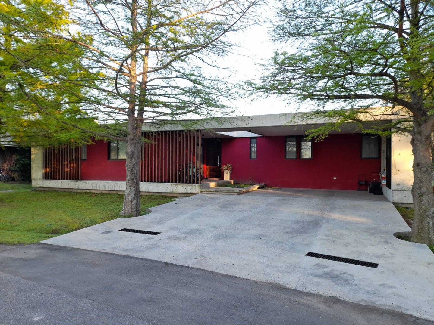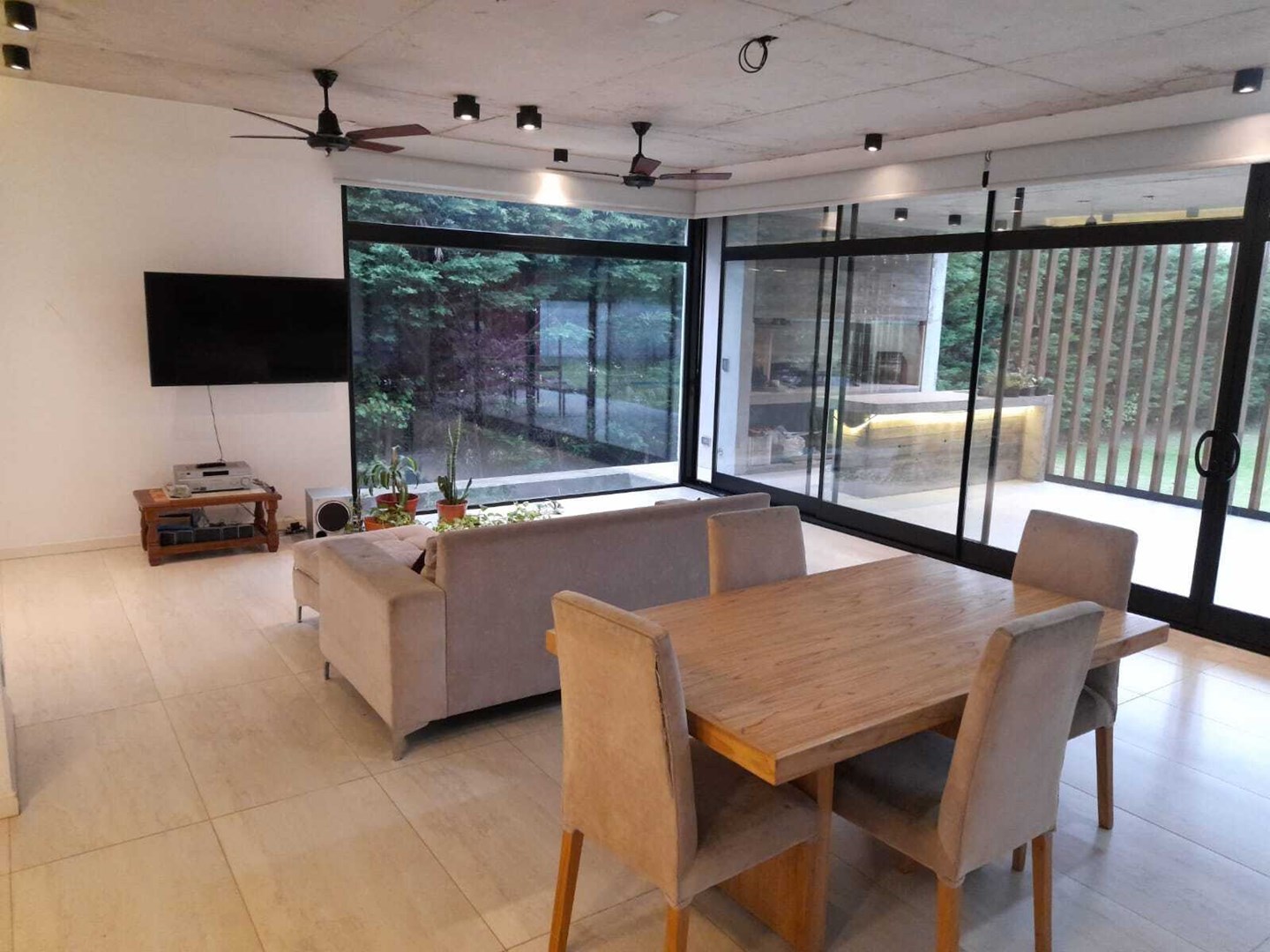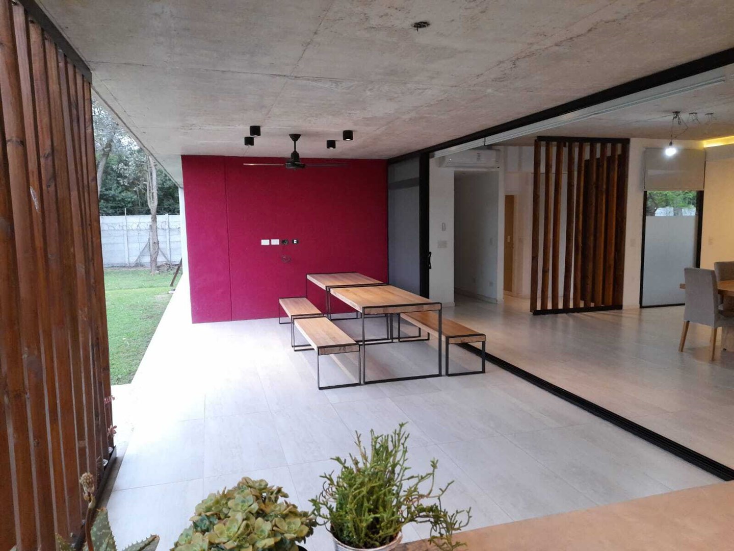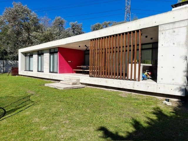 Importante casa moderna estilo minimalista construida en hormigón y cerramientos steel framing en una planta sobre un lote perimetral de 1072 m2. Tiene una superficie cubierta de 189,6 m2 y semicubierta de 43,5m2, haciendo una superficie total construida de 233,10 m2. Gran puerta de ingreso, lo que brinda una entrada amplia con toilette y armario de recepción. Espectacular living comedor con ventanales corredizos en su totalidad de piso a techo, logrando una excelente amplitud e integración hacia una gran galería y el parque. Moderna cocina integrada al frente con una gran isla, dependencia de servicio y lavadero. Dos habitaciones con armarios empotrados con puertas corredizas que comparten un baño completo y un tercer dormitorio en suite con baño y un gran vestidor. Las tres habitaciones también cuentan con grandes ventanales corredizos de piso a techo. Todas las aberturas son de aluminio línea modena con vidrios DVH y cámara de aire, lo que hace que las vistas al exterior de todos los ambientes sean hermosas. Todos los ambientes cuentan con cortinas roller; en las habitaciones black out y sun screem y en el resto de los ambientes solo sun screem, lo que hace que el living tenga un atractivo especial ya que dichas cortinas cuentan con un sistema automatizado que se manejan a control remoto, tanto en forma individual como en su conjunto. Sistema de calefacción por losa radiante, TV por cable e internet en todos los ambientes. La galería cuenta con una espectacular parrilla con barra toda hecha en hormigón y muy bien iluminada. Cochera cubierta al frente para 2 autos donde hay un espacio de guardado sobre el lado derecho donde se encuentra el termotanque, la bomba del tanque cisterna y la caldera marca Baxi. La iluminación de toda la casa es LED y cuenta con grandes detalles de categoría, lo que hacen de la misma una impecable propiedad para vivirla y disfrutarla.