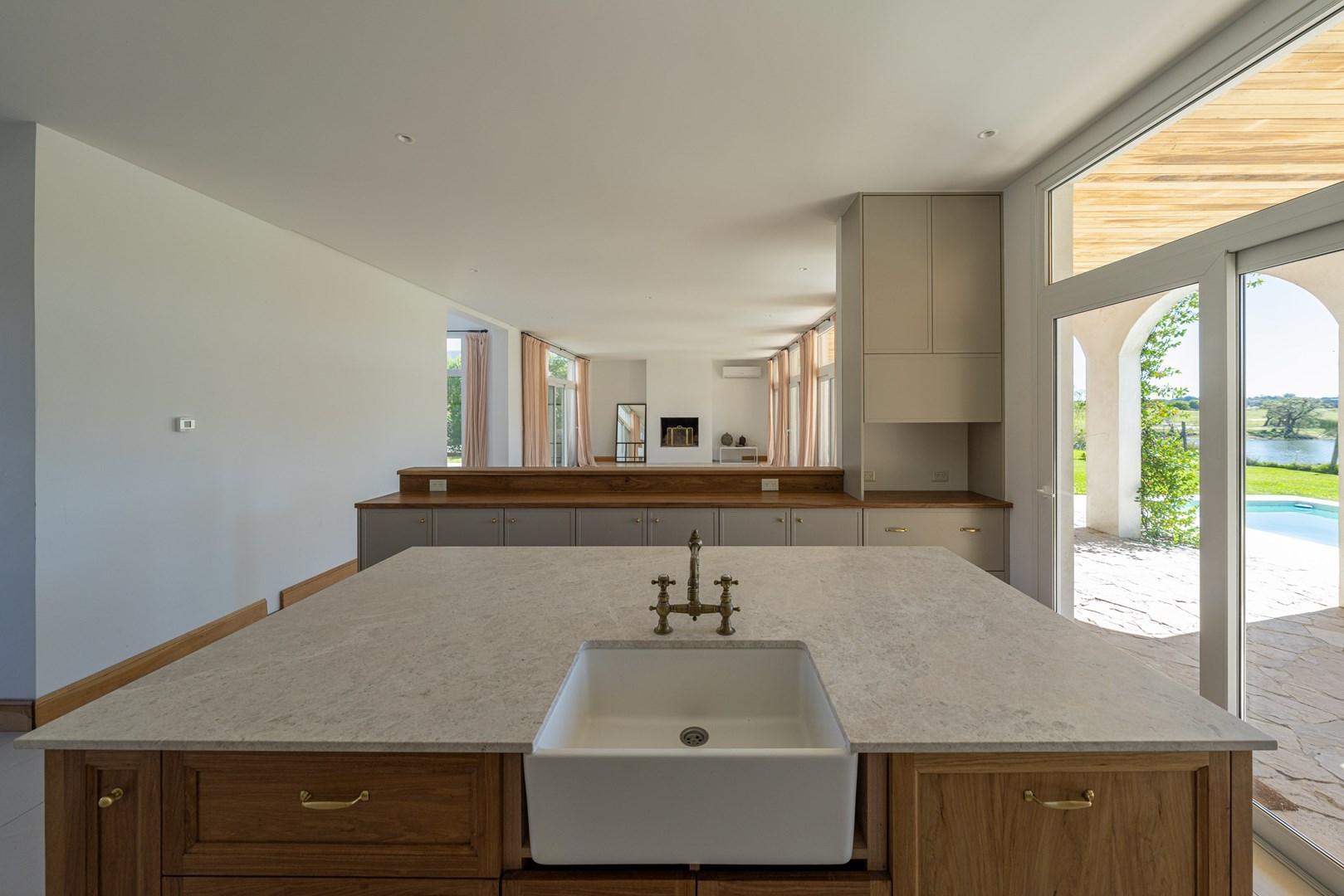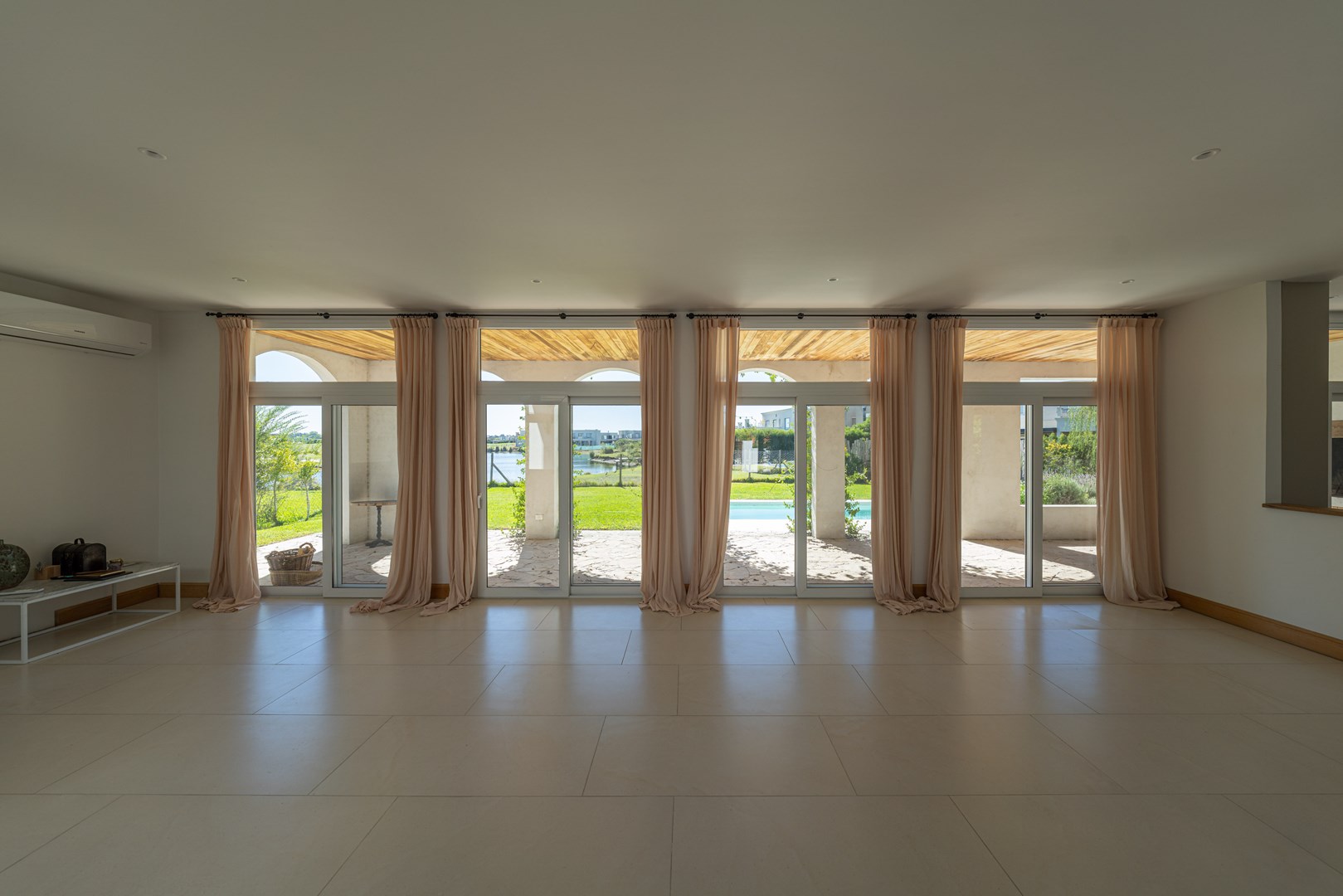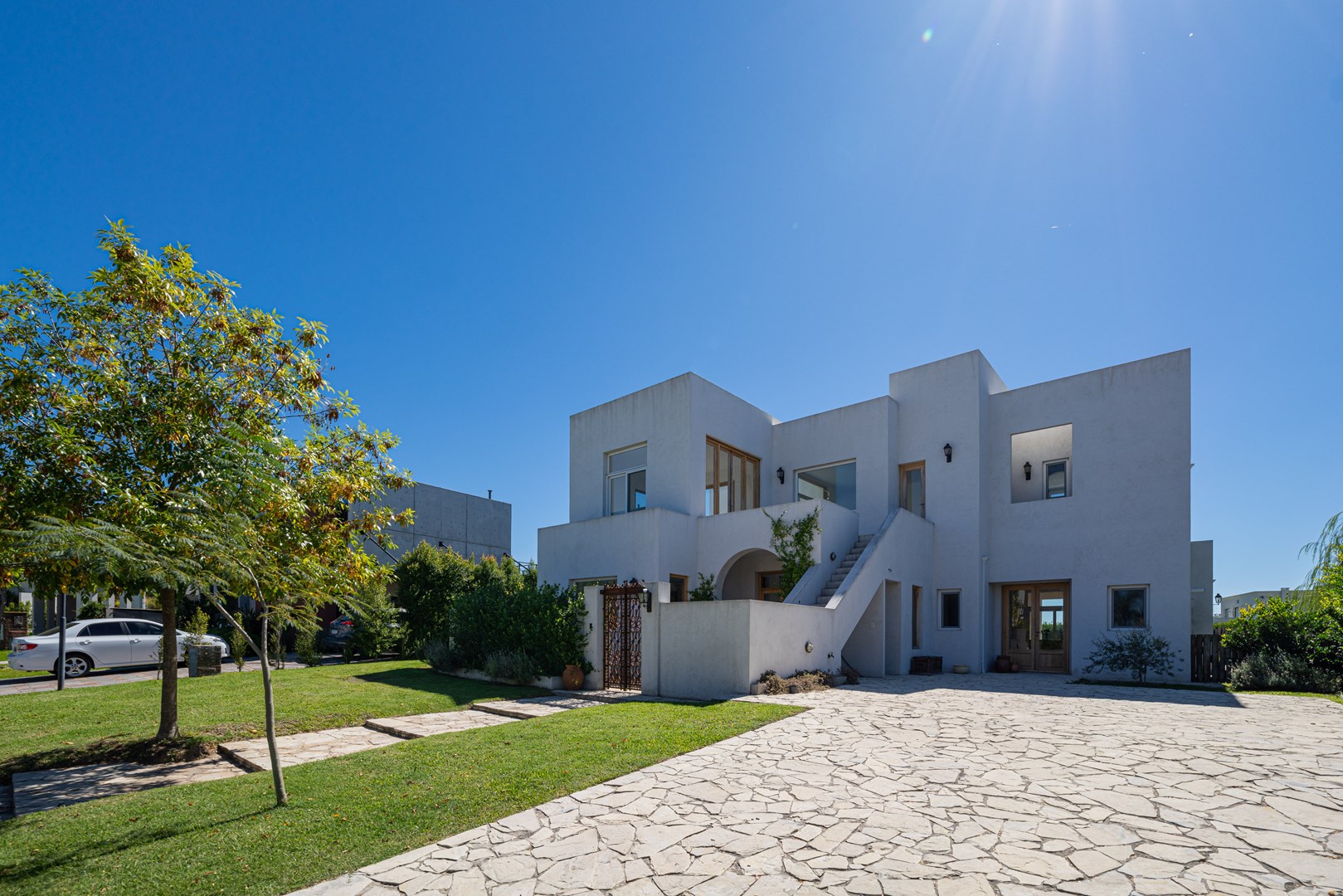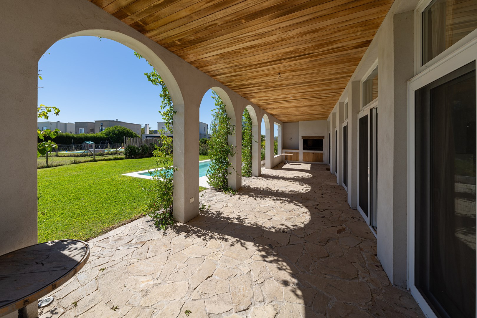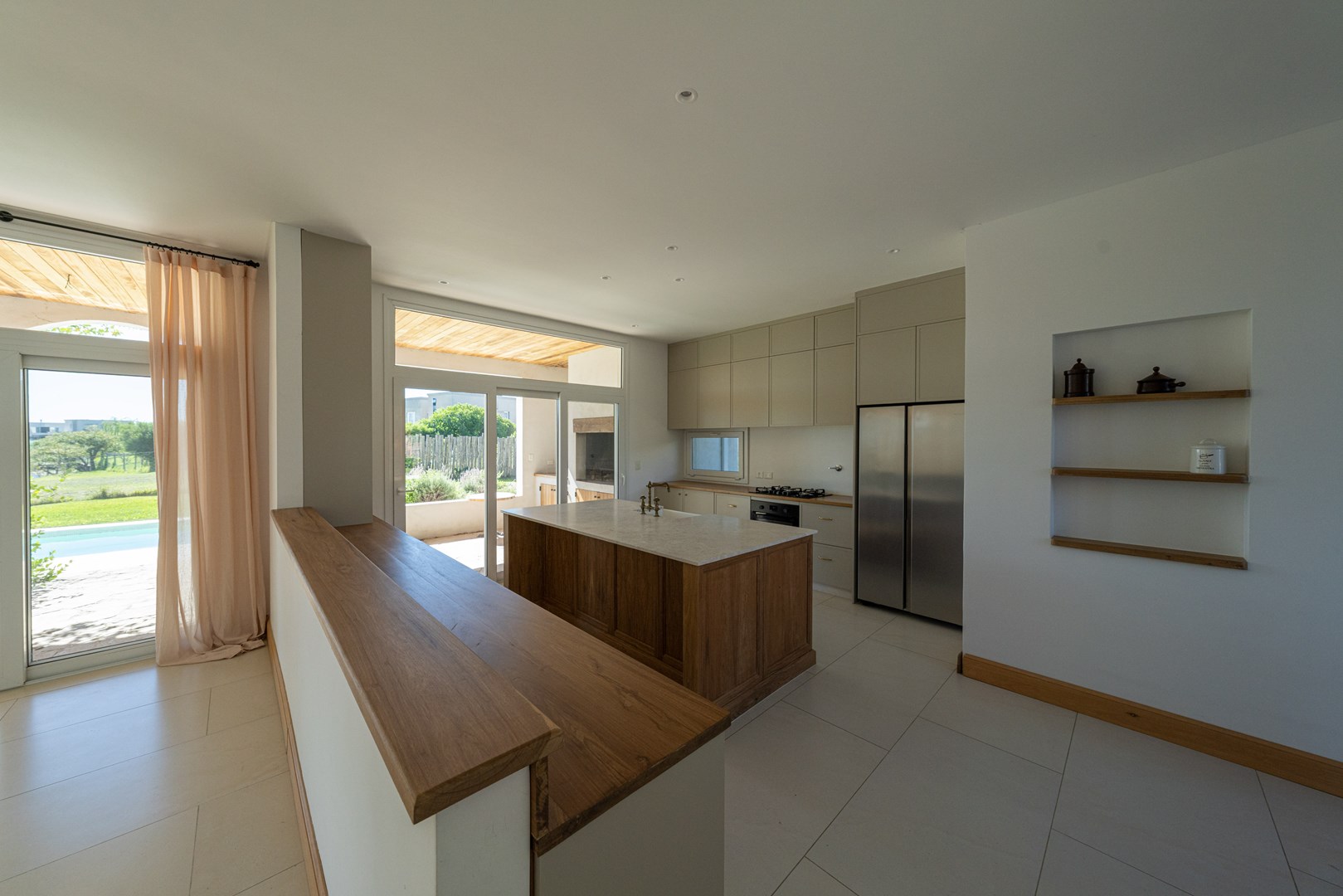 Casa a estrenar con salida a la laguna y orientación norte – Estilo mediterráneo | El Cantón Golf 3 dormitorios | estudio independiente | galería con parrilla | pileta con playa húmeda Ubicada en El Cantón – Barrio Golf, esta casa a estrenar combina arquitectura de estilo mediterráneo, materiales nobles y amplios ambientes llenos de luz, con vista abierta y posibilidad de acceso directo a la laguna. El ingreso se realiza a través de un patio interno que aporta privacidad, conduciendo al hall de entrada en doble altura, donde se destaca la escalera de madera con baranda de hierro, iluminada por grandes ventanales que aportan luz natural durante todo el día. Desde este espacio también se aprecia un segundo patio interno, que aporta aún más luz y conexión con el exterior. Planta baja En este nivel se ubican el playroom, el living comedor con cocina integrada y el toilette. El living con hogar interior se conecta con la galería y el jardín mediante amplios ventanales corredizos, generando una excelente integración entre interior y exterior. El toilette cuenta con mesada de mármol y mueble de madera petiribí, y debajo de la escalera se encuentra un práctico placard recibidor. La cocina continúa con la estética cálida de la casa y posee una gran isla central de madera petiribí con mesada de mármol y bacha, muebles laqueados y alacenas altas que brindan amplio espacio de guardado. Está equipada con lavavajillas panelable, horno, anafe a gas y heladera doble, además de una barra con coffee station que permite integrarla con el living. La entrada de servicio conecta directamente con la cocina y el lavadero, que dispone de amplio espacio de guardado y despensa. Desde la planta alta existe además una bajada interna para la ropa sucia. Exterior La casa se abre hacia una amplia galería con arcadas cubiertas de jazmín y vista hacia la laguna, generando un espacio ideal para disfrutar del exterior. Cuenta con parrilla equipada y se conecta con el sector de la pileta con playa húmeda y deck, además de un baño exterior de pileta. El jardín tiene orientación norte, posee riego por aspersión y posibilidad de acceso directo a la laguna. Planta alta En este nivel se desarrollan tres dormitorios y un estudio con acceso independiente. La suite principal cuenta con vestidor, baño completo y salida a una terraza privada con vista a la laguna. Los otros dos dormitorios también disfrutan de vista al agua y comparten un baño completo. Ambos baños cuentan con muebles de madera y mesadas de mármol. El estudio, con acceso tanto desde el interior de la casa como desde el exterior mediante una escalera independiente, resulta ideal para oficina, taller o espacio de trabajo independiente. Destacados de la propiedad Vista y salida a la laguna Jardín con orientación norte Dos patios internos que aportan luz y privacidad Galería con parrilla Pileta con playa húmeda y deck Estudio con acceso independiente Calefacción por losa radiante Aberturas con DVH Materiales de primera calidad Una propiedad ideal para quienes buscan diseño, amplitud y vida frente al agua dentro de El Cantón. Consultanos para coordinar una visita.