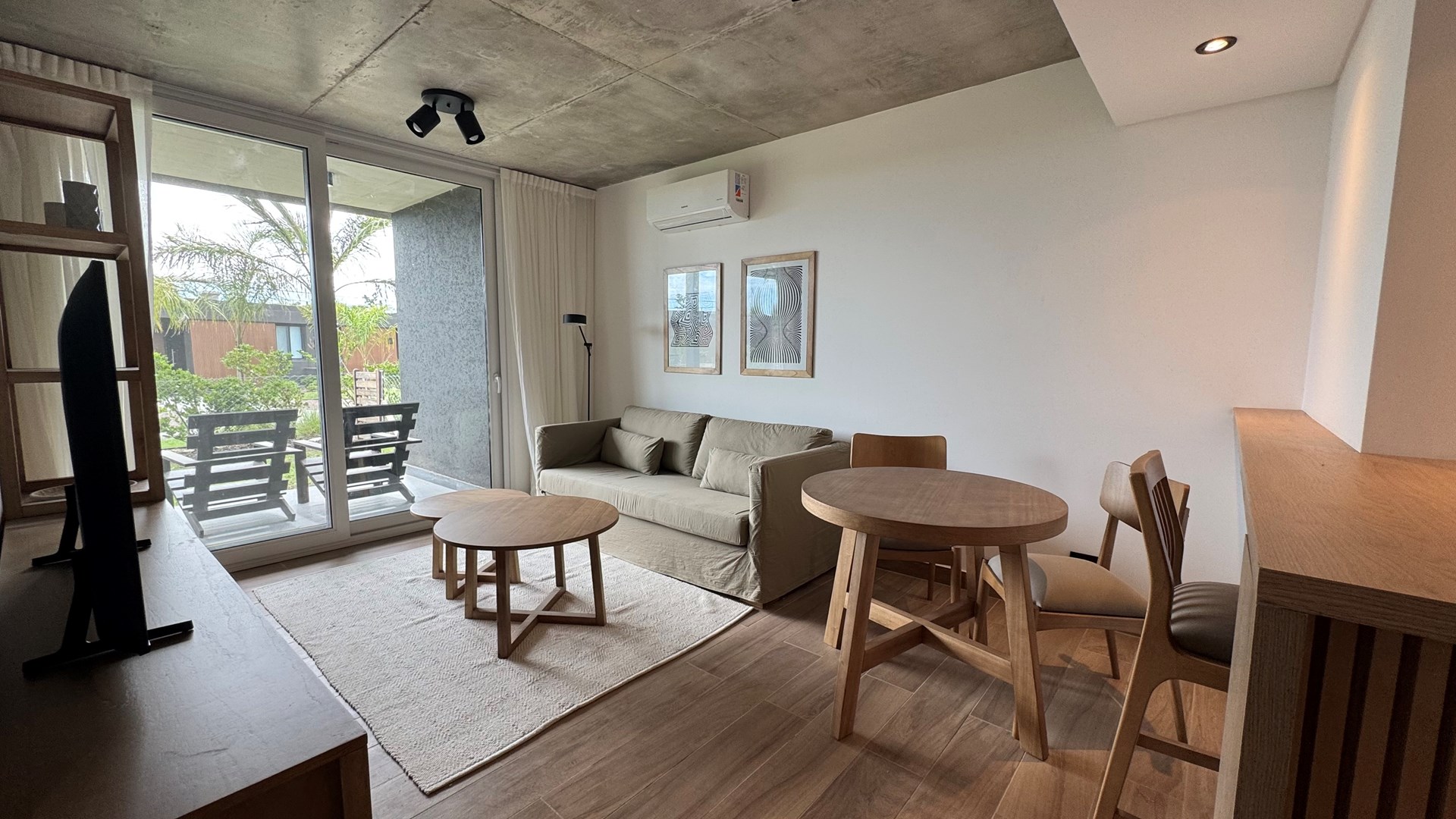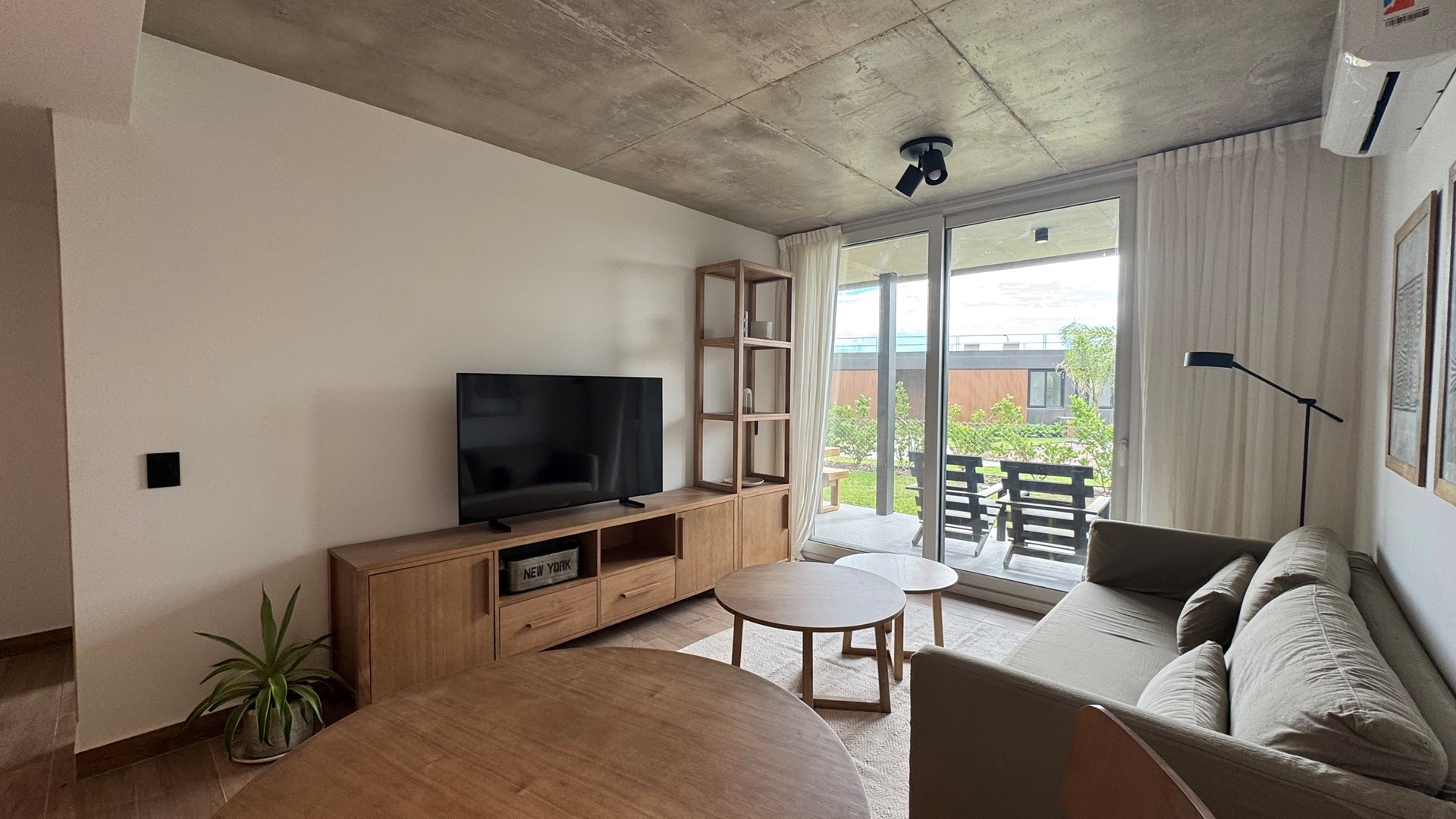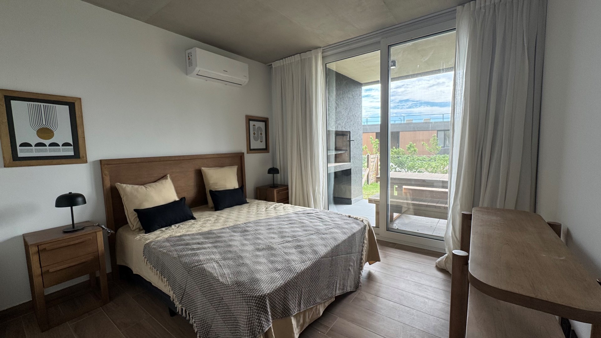 Departamento AMOBLADO de 2 ambientes de 70m2 aprox con Jardin 20,30m2 aprox., parrilla y cochera en Complejo Milennia, ubicado en la mejor zona de Nordelta, frente a centro cívico, Barrio Puentes y vecino de Barrio Castaños. Con rápido acceso vehicular y comodidad en medios de transporte. ALQUILER MINIMO POR 12 MESES. Milennia es el nuevo desarrollo inmobiliario de Nordelta, con excelentes detalles de diseño y calidad de construcción. Un complejo de 53 departamentos de 1 a 4 ambientes con cochera en Nordelta. El complejo consta de 4 módulos de viviendas en planta baja y dos pisos con acceso a terrazas de usos privados y un quinto modulo desarrollado en planta baja que tendrá una terraza accesible de uso común. Cuenta con SUM, pileta y solárium, espacio coworking, yoga space y fogonero. El edificio esta construido con estructura independiente de hormigón armado (compuesto por bases, columnas, vigas y losa), cerramientos de ladrillo hueco y cubierta de losa transitable. Servicios de Agua y Electricidad que brindan las comodidades necesarias a los habitantes. MATERIALES Y TERMINACIONES EXTERIORES FACHADAS: - Terminación exterior en hormigón visto en losas, revestimiento plástico (gris a definir) y barandas de vidrio. – MUROS EXTERIORES E INTERIORES: - Ladrillo hueco de 18, 12 y 8 cm en interiores según el ambiente. CARPINTERÍAS: - Carpinterías exteriores de PVC (Marca Tecnoperfil o similar) con DVH. - Puertas exteriores con marco y hoja de chapa. - Puertas interiores con marco y hoja de madera foliada color blanco - Frentes de placards con hojas corredizas de madera (melamina). INSTALACIONES: - Calefacción por piso radiante electrico. – Pre kits para equipos de Aire Acondicionado Split. - Agua caliente individual. - Tanque de bombeo y reserva. - Sistema de agua termofusión. VARIOS: - Escaleras de hormigón con antideslizante. - Barandas de hierro en escaleras y de vidrio en balcones MATERIALES Y TERMINACIONES INTERIORES PISOS: - de porcelanato en todo el departamento. PAREDES: - Todos los ambientes: enduido + pintura látex satinado. BAÑOS: revestimiento porcelanato TECHOS: - Losa, tratado y pintado. en Baños: cielorraso suspendido. ARTEFACTOS: - Cocina: pileta acero inoxidable. - Artefacto Cocina: completa (anafe y horno) eléctricos. - Sanitarios baño: línea FERRUM o ROCA (Bari o similar). GRITERÍAS / ACCESORIOS: - Cocina: monocomando DROP cromo o similar. - Baño: monocomando DROP cromo o similar. EQUIPAMIENTO Y MESADAS: - muebles de cocina bajo mesada. - Mesadas de Silestone blanco o similar. - Mesadas baño: mesada y bacha de apoyar.