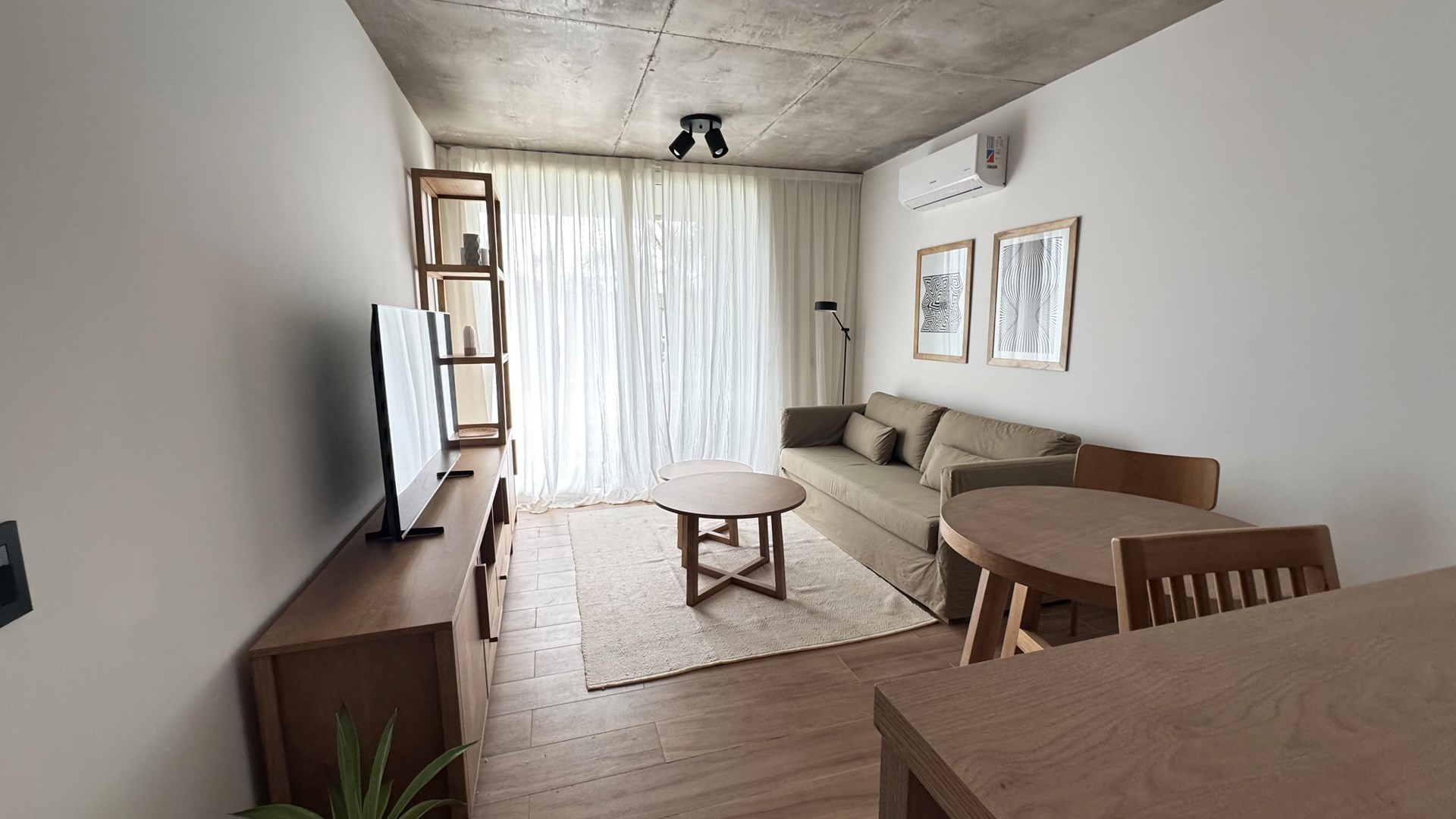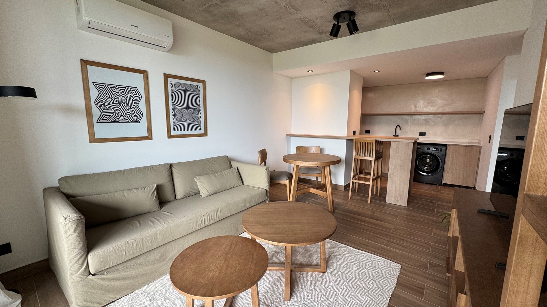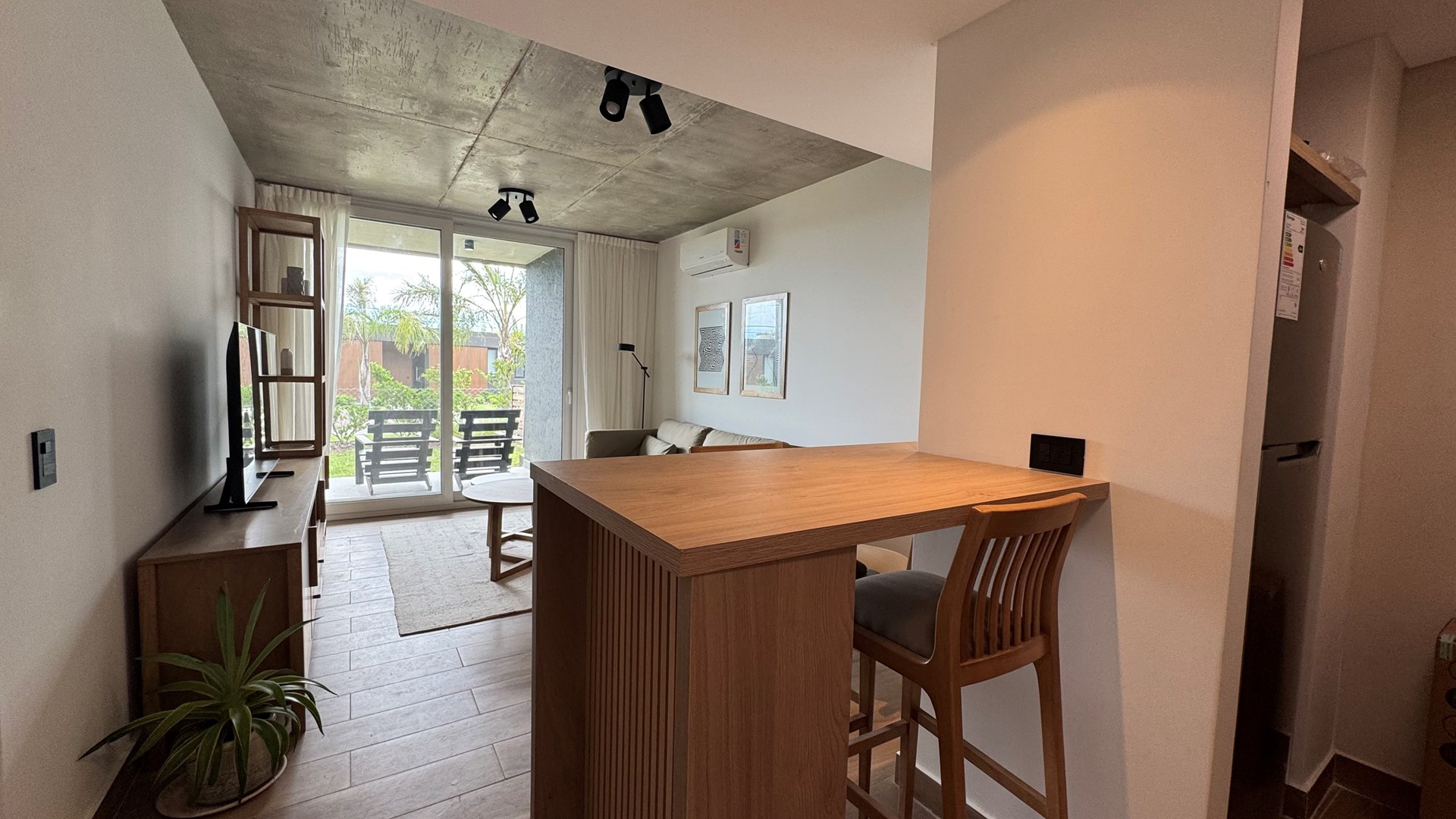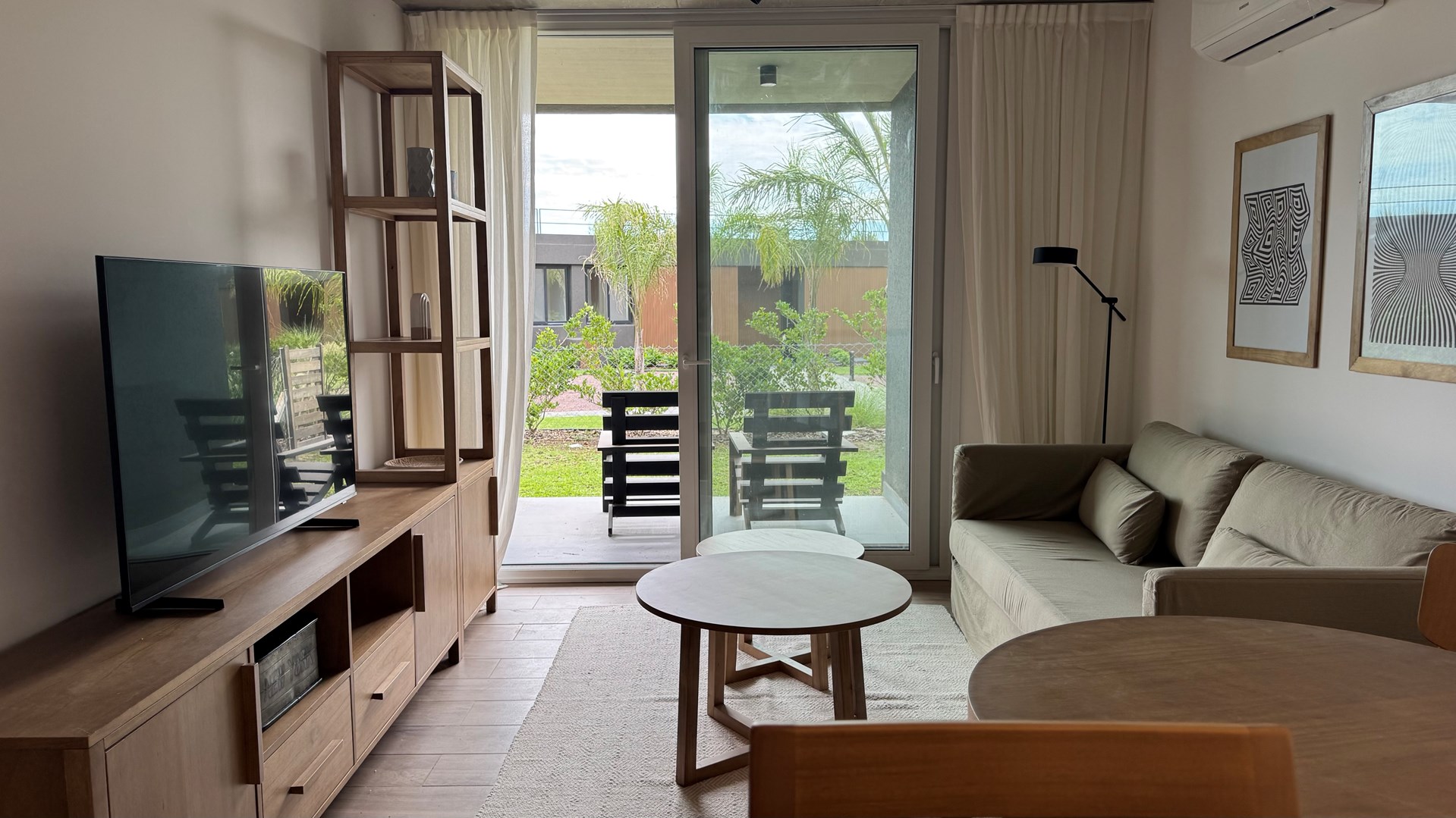 Departamento AMOBLADO de 2 ambientes de 70m2 aprox con Jardin 20,30m2 aprox., parrilla y cochera en Complejo Milennia, ubicado en la mejor zona de Nordelta, frente a centro cívico, Barrio Puentes y vecino de Barrio Castaños. Con rápido acceso vehicular y comodidad en medios de transporte. ALQUILER MINIMO POR 12 MESES. Milennia es el nuevo desarrollo inmobiliario de Nordelta, con excelentes detalles de diseño y calidad de construcción. Un complejo de 53 departamentos de 1 a 4 ambientes con cochera en Nordelta. El complejo consta de 4 módulos de viviendas en planta baja y dos pisos con acceso a terrazas de usos privados y un quinto modulo desarrollado en planta baja que tendrá una terraza accesible de uso común. Cuenta con SUM, pileta y solárium, espacio coworking, yoga space y fogonero. El edificio esta construido con estructura independiente de hormigón armado (compuesto por bases, columnas, vigas y losa), cerramientos de ladrillo hueco y cubierta de losa transitable. Servicios de Agua y Electricidad que brindan las comodidades necesarias a los habitantes. MATERIALES Y TERMINACIONES EXTERIORES FACHADAS: - Terminación exterior en hormigón visto en losas, revestimiento plástico (gris a definir) y barandas de vidrio. – MUROS EXTERIORES E INTERIORES: - Ladrillo hueco de 18, 12 y 8 cm en interiores según el ambiente. CARPINTERÍAS: - Carpinterías exteriores de PVC (Marca Tecnoperfil o similar) con DVH. - Puertas exteriores con marco y hoja de chapa. - Puertas interiores con marco y hoja de madera foliada color blanco - Frentes de placards con hojas corredizas de madera (melamina). INSTALACIONES: - Calefacción por piso radiante electrico. – Pre kits para equipos de Aire Acondicionado Split. - Agua caliente individual. - Tanque de bombeo y reserva. - Sistema de agua termofusión. VARIOS: - Escaleras de hormigón con antideslizante. - Barandas de hierro en escaleras y de vidrio en balcones MATERIALES Y TERMINACIONES INTERIORES PISOS: - de porcelanato en todo el departamento. PAREDES: - Todos los ambientes: enduido + pintura látex satinado. BAÑOS: revestimiento porcelanato TECHOS: - Losa, tratado y pintado. en Baños: cielorraso suspendido. ARTEFACTOS: - Cocina: pileta acero inoxidable. - Artefacto Cocina: completa (anafe y horno) eléctricos. - Sanitarios baño: línea FERRUM o ROCA (Bari o similar). GRITERÍAS / ACCESORIOS: - Cocina: monocomando DROP cromo o similar. - Baño: monocomando DROP cromo o similar. EQUIPAMIENTO Y MESADAS: - muebles de cocina bajo mesada. - Mesadas de Silestone blanco o similar. - Mesadas baño: mesada y bacha de apoyar.