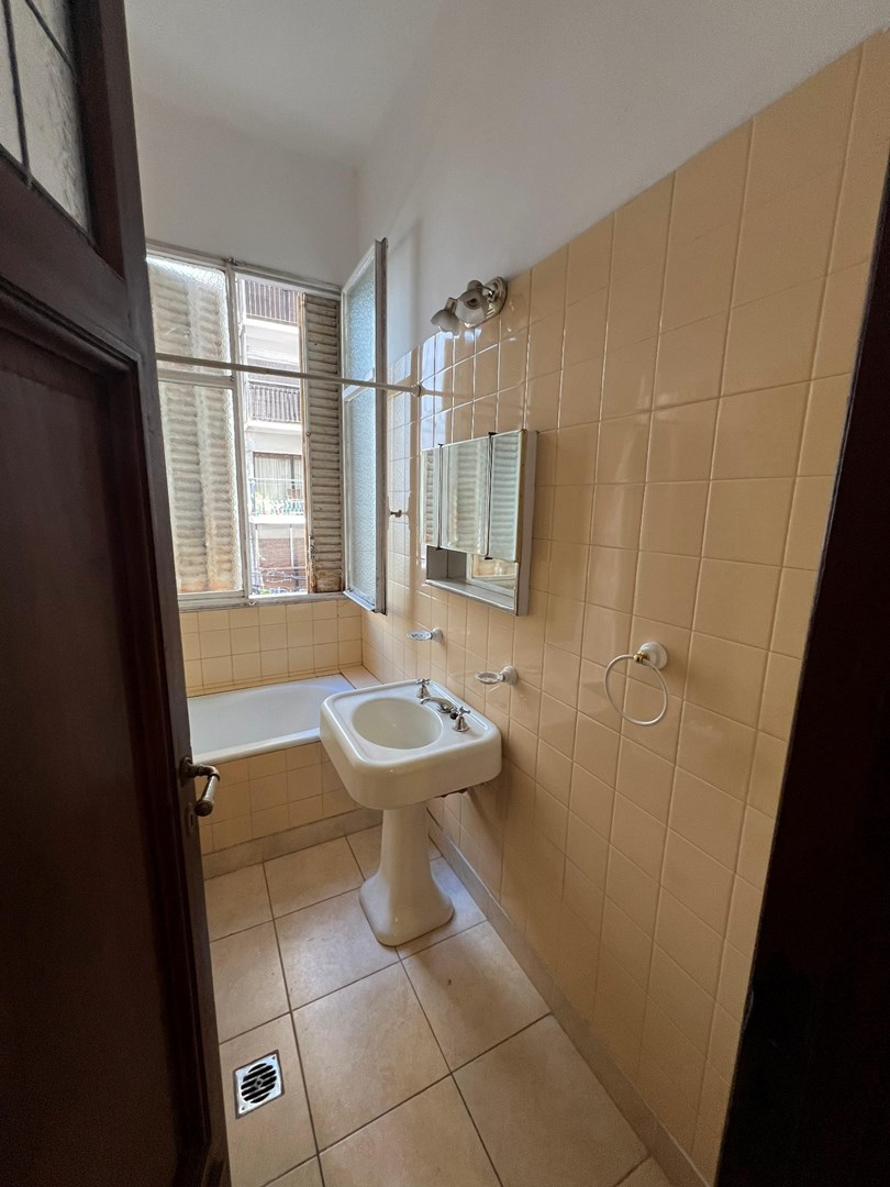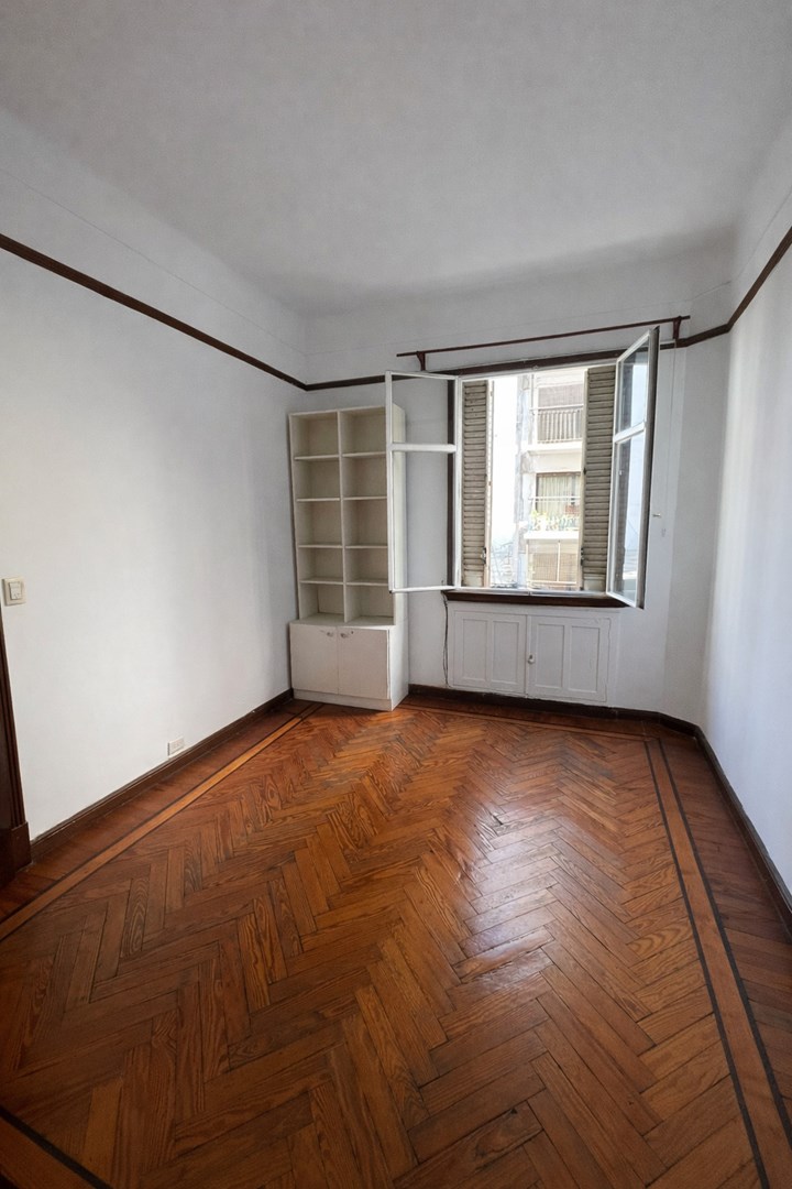 Departamento ubicado en Montevideo casi esquina Av. Santa Fe, en una de las zonas más buscadas de Recoleta, rodeada de comercios, transporte y a pocos metros de múltiples facultades. La unidad se encuentra en segundo piso al contrafrente, en un edificio antiguo de estilo con ascensor y encargado. Cuenta con 58 m² cubiertos y una distribución particular, típica de edificios de época, que ofrece múltiples posibilidades de reorganización. Al ingresar encontramos un pequeño hall de recepción, desde el cual se accede a un lavadero y baño de servicio. Luego se desarrolla una cocina independiente. El departamento posee un ambiente central con ventanal tipo vitraux, ideal como living o comedor, que aporta carácter. Desde allí se accede a dos dormitorios amplios, dispuestos en secuencia, ambos con pisos de parquet en espiga y techos altos, uno de ellos da a la calle. Adicionalmente, el living conecta con un gran pasillo de distribución con placard de importantes dimensiones, que conduce al baño principal completo. Ambos dormitorios cuentan con acceso a este pasillo. Características destacadas 58 m² cubiertos Pisos de parquet original en espiga Aberturas y detalles de estilo Baño principal completo Baño de servicio Lavadero Cocina independiente Gran placard en pasillo Edificio con ascensor y encargado El departamento requiere modernización de cocina y baños, lo que representa una excelente oportunidad para reciclar y valorizar la propiedad. Ubicación estratégica Ubicado a metros de Av. Santa Fe, con excelente conectividad y cercanía a numerosas facultades, entre ellas: Facultad de Medicina Facultad de Ciencias Económicas Odontología Ciencias Sociales La zona es altamente demandada tanto para vivienda como para inversión en alquiler a estudiantes o renta temporaria. La propiedad no posee instalaciones aptas para personas con movilidad reducida. Martillera Paola Espinosa CUCICBA 7486 Martillera Paola Espinosa CMPSI 6246 Las imágenes provistas en el anuncio fueron incluidas sólo a efecto ilustrativo de esta presentación. Las medidas son aproximadas y han sido suministradas por los propietarios