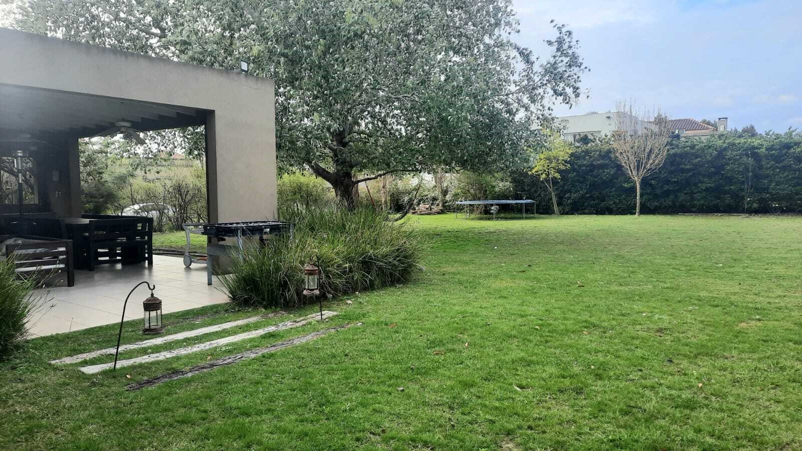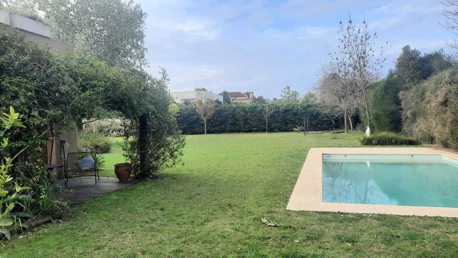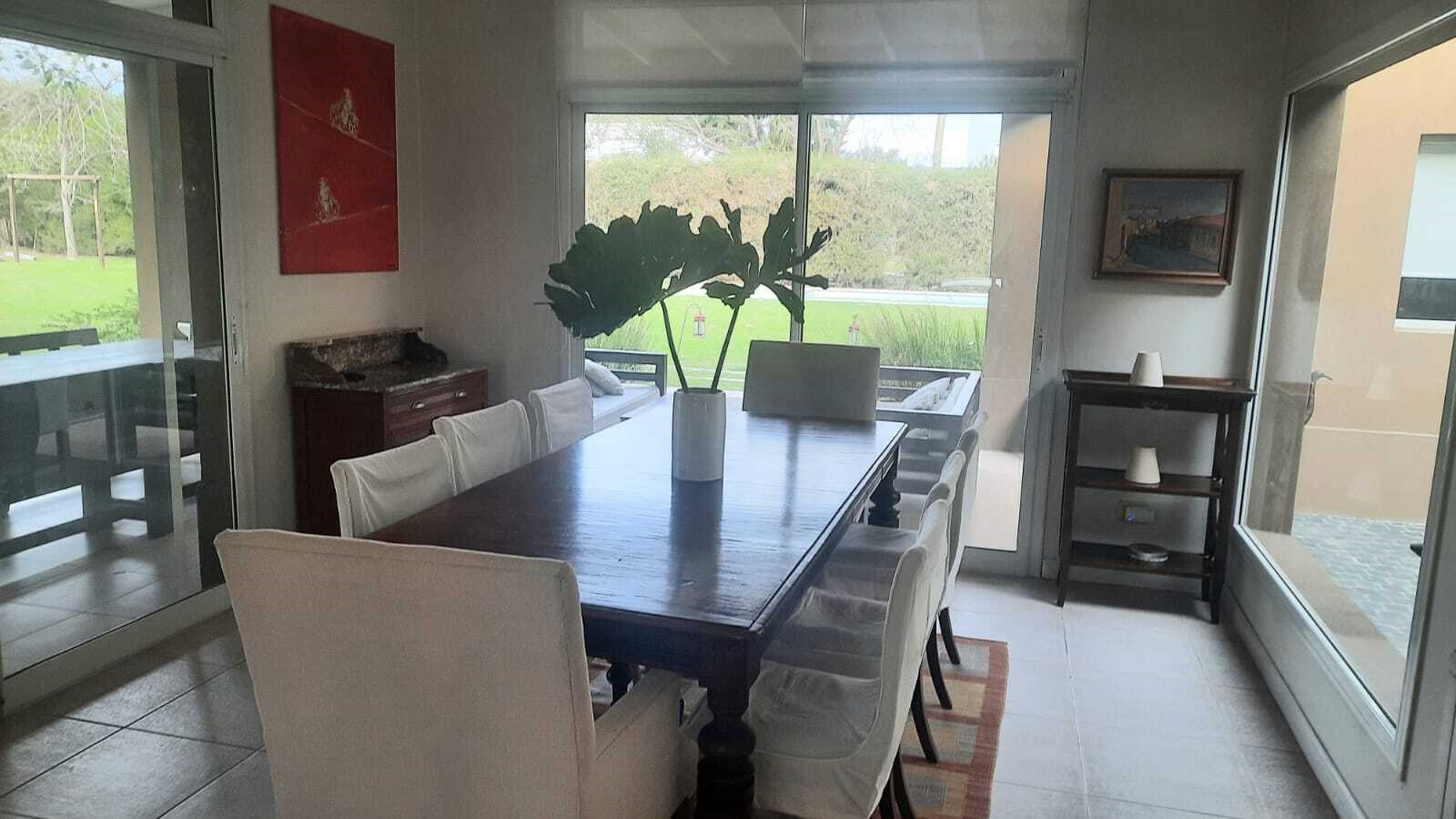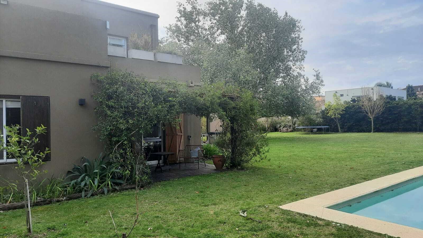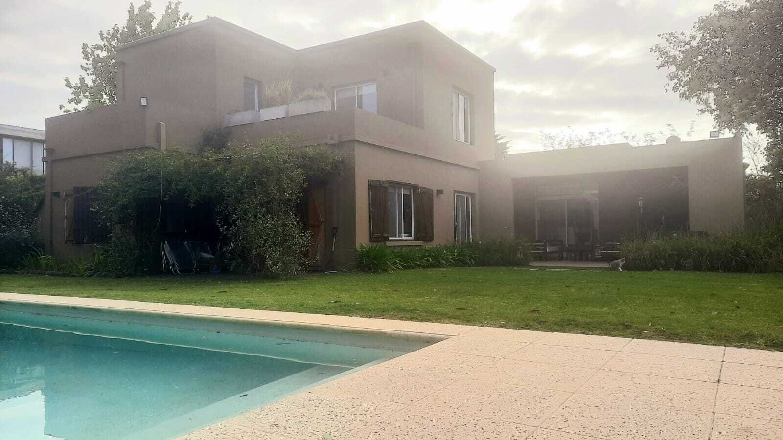 Casa muy linda en talar del lago 2 sobre dos lotes interno. PLANTA BAJA:patio interno recibidor con vista a varios ambiente de la casa. Living comedor muy bien decorado con vista al jardin y galeria. 2 dormitorios y un playroom. Uno de los dormitorios posee dos cuchetas con dos camas que se sacan de abajo. El otro posee dos camas individuales. 2 banos completos. Ambos con TV y aire. Playroom de excelentes dimensiones, con tv y aire. Cocina con comedor diario, dependencia de servicio y lavadero independiente. PLANTA ALTA: Master Suite con salida a una terraza , tv y aire. Segundo playroom en la plata alta con escritorio. EXTERIOR:Excelente jardín con parquización. Galería muy cómoda con mesa para 12 personas y living. parrilla, cama elastica, metegol. Pileta y Solarium