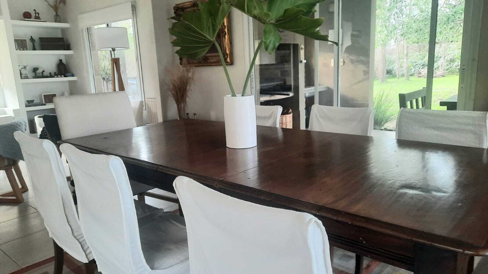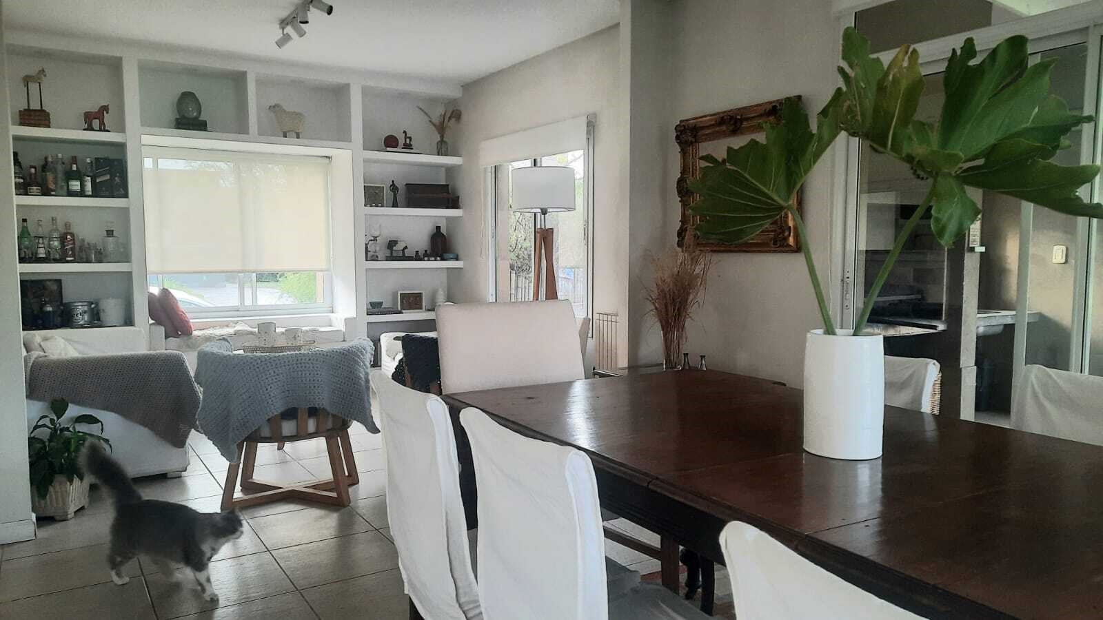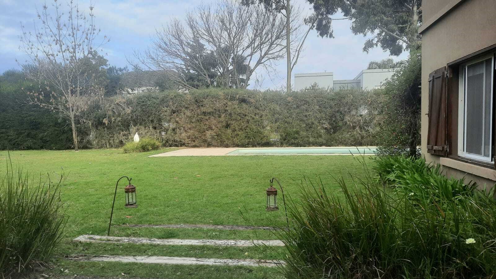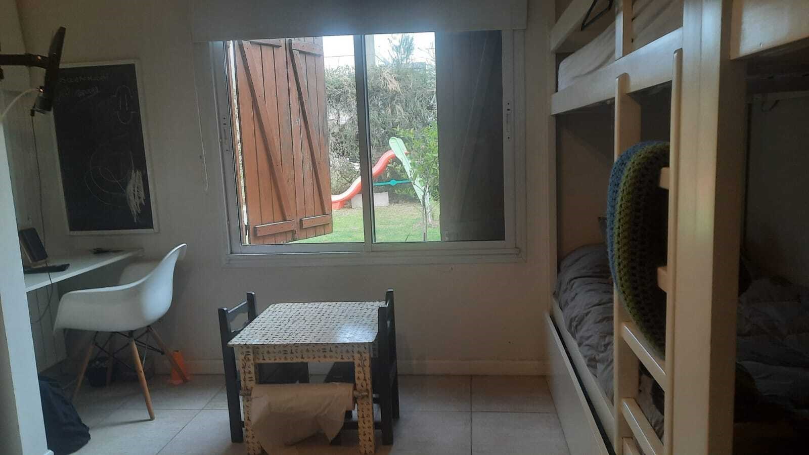 Casa muy linda en talar del lago 2 sobre dos lotes interno. PLANTA BAJA:patio interno recibidor con vista a varios ambiente de la casa. Living comedor muy bien decorado con vista al jardin y galeria. 2 dormitorios y un playroom. Uno de los dormitorios posee dos cuchetas con dos camas que se sacan de abajo. El otro posee dos camas individuales. 2 banos completos. Ambos con TV y aire. Playroom de excelentes dimensiones, con tv y aire. Cocina con comedor diario, dependencia de servicio y lavadero independiente. PLANTA ALTA: Master Suite con salida a una terraza , tv y aire. Segundo playroom en la plata alta con escritorio. EXTERIOR:Excelente jardín con parquización. Galería muy cómoda con mesa para 12 personas y living. parrilla, cama elastica, metegol. Pileta y Solarium
