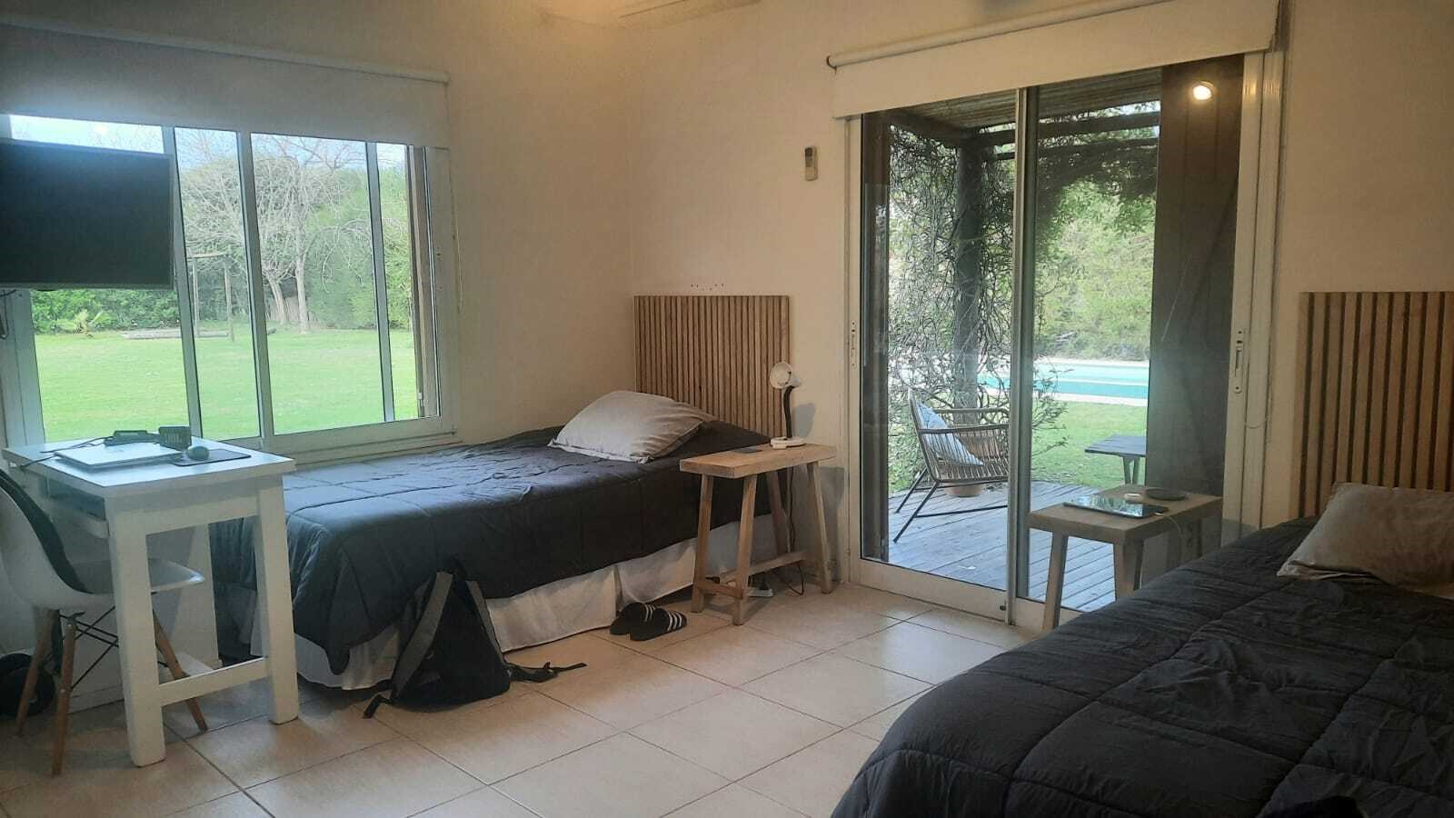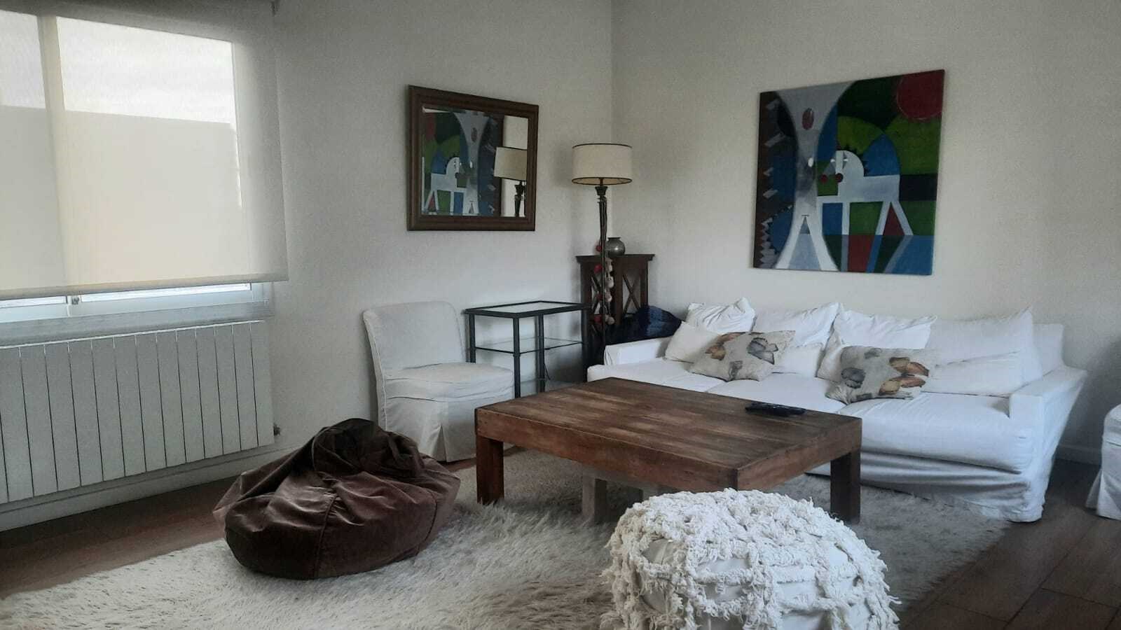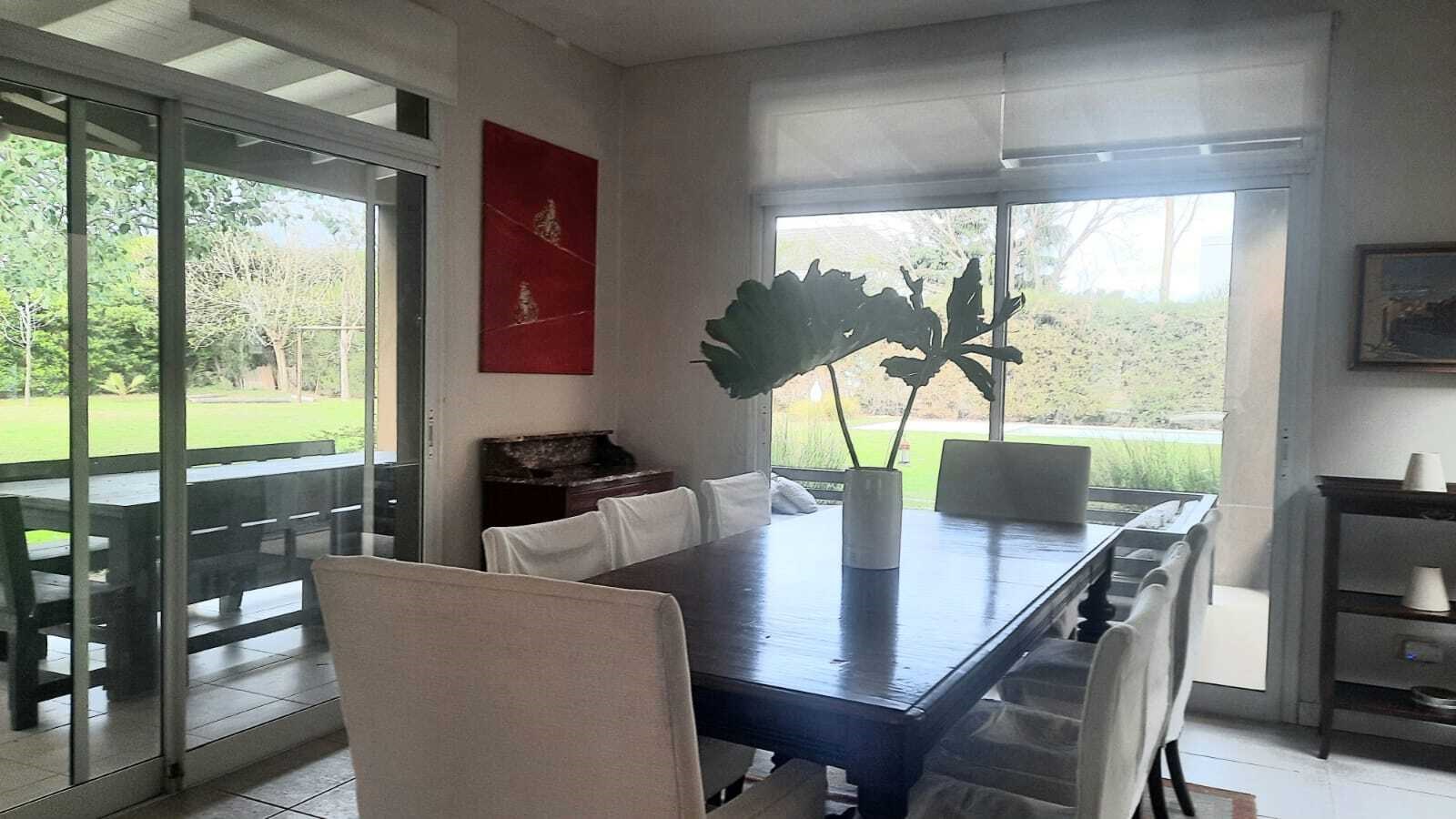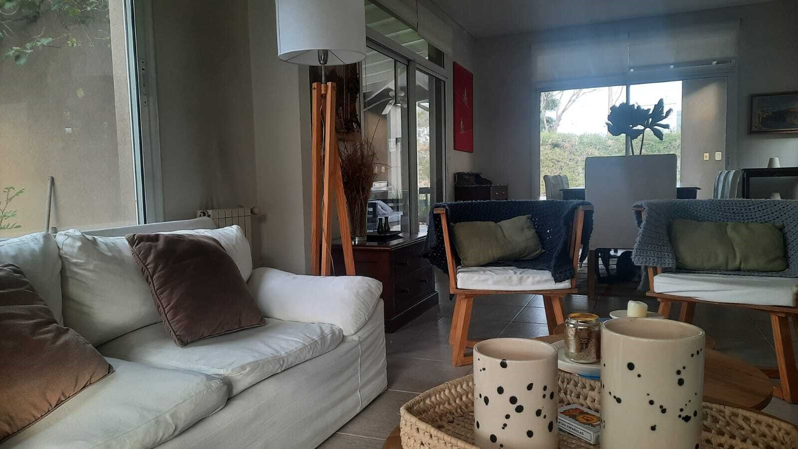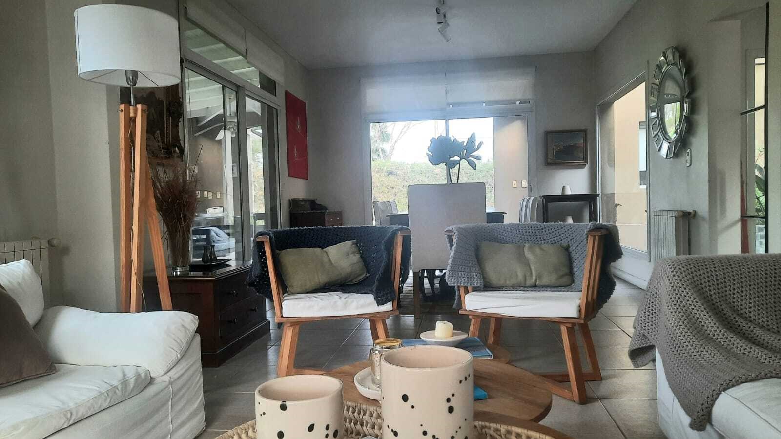 Casa muy linda en talar del lago 2 sobre dos lotes interno. PLANTA BAJA:patio interno recibidor con vista a varios ambiente de la casa. Living comedor muy bien decorado con vista al jardin y galeria. 2 dormitorios y un playroom. Uno de los dormitorios posee dos cuchetas con dos camas que se sacan de abajo. El otro posee dos camas individuales. 2 banos completos. Ambos con TV y aire. Playroom de excelentes dimensiones, con tv y aire. Cocina con comedor diario, dependencia de servicio y lavadero independiente. PLANTA ALTA: Master Suite con salida a una terraza , tv y aire. Segundo playroom en la plata alta con escritorio. EXTERIOR:Excelente jardín con parquización. Galería muy cómoda con mesa para 12 personas y living. parrilla, cama elastica, metegol. Pileta y Solarium