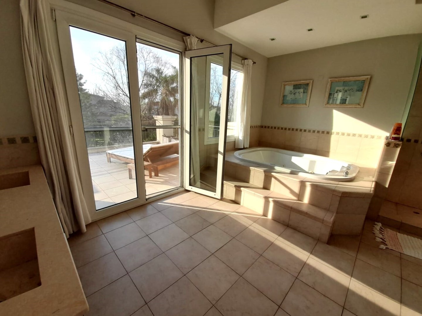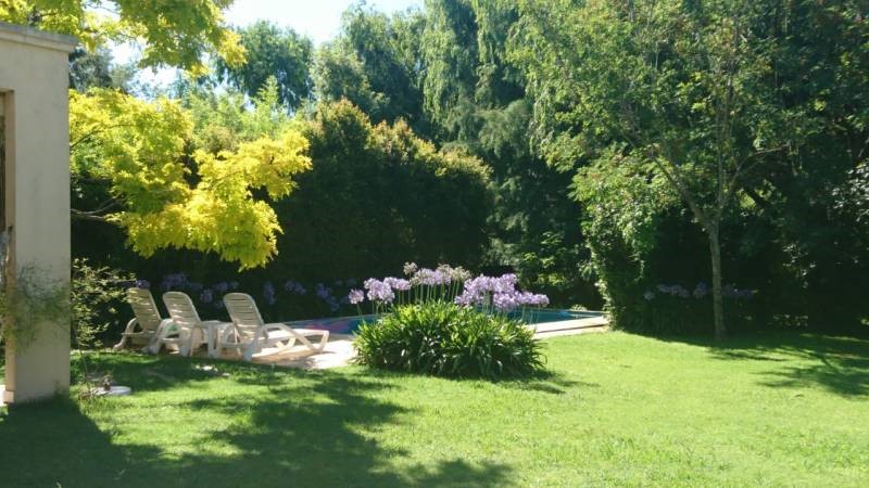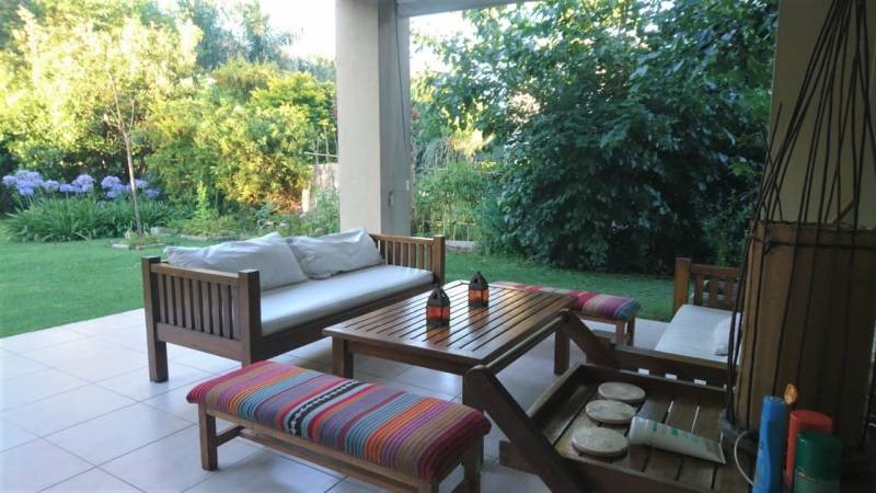 Alquiler Barrio Cerrado Santa Bárbara. 4 DORMITORIOS. NOVIEMBRE 5000, DICIEMBRE 6000, ENERO 6000, FEBRERO 5000. SI NO ES MES ENTERO CONSULTAR EL PRECIO, SEGUN LA FECHA. Casa de 4 dormitorios: Dos Suites ( Suite ppal, Suite Junior) y 2 dormitorios que comparten otro baño.. Dependencia y baño de servicio. Jardín arbolado, pileta, fresca galería orientada al noreste. parrilla. Living comedor con aire acondicionado. cocina, playroom cerca de la cocina, las 4 habitaciones con aire y ventilador. Parrilla bajo el techo de la galería. Venir SIN mascotas.