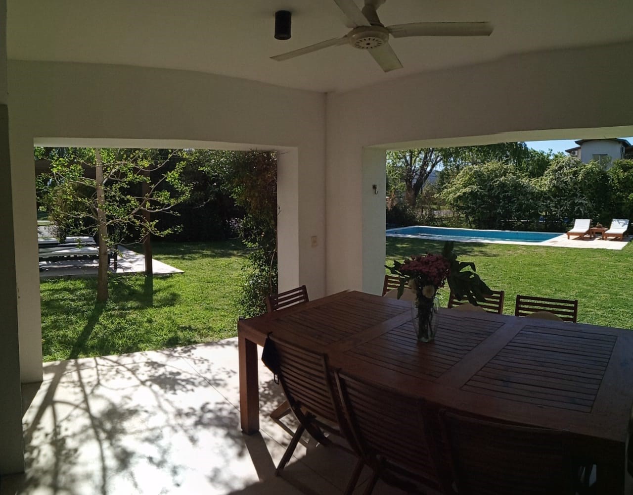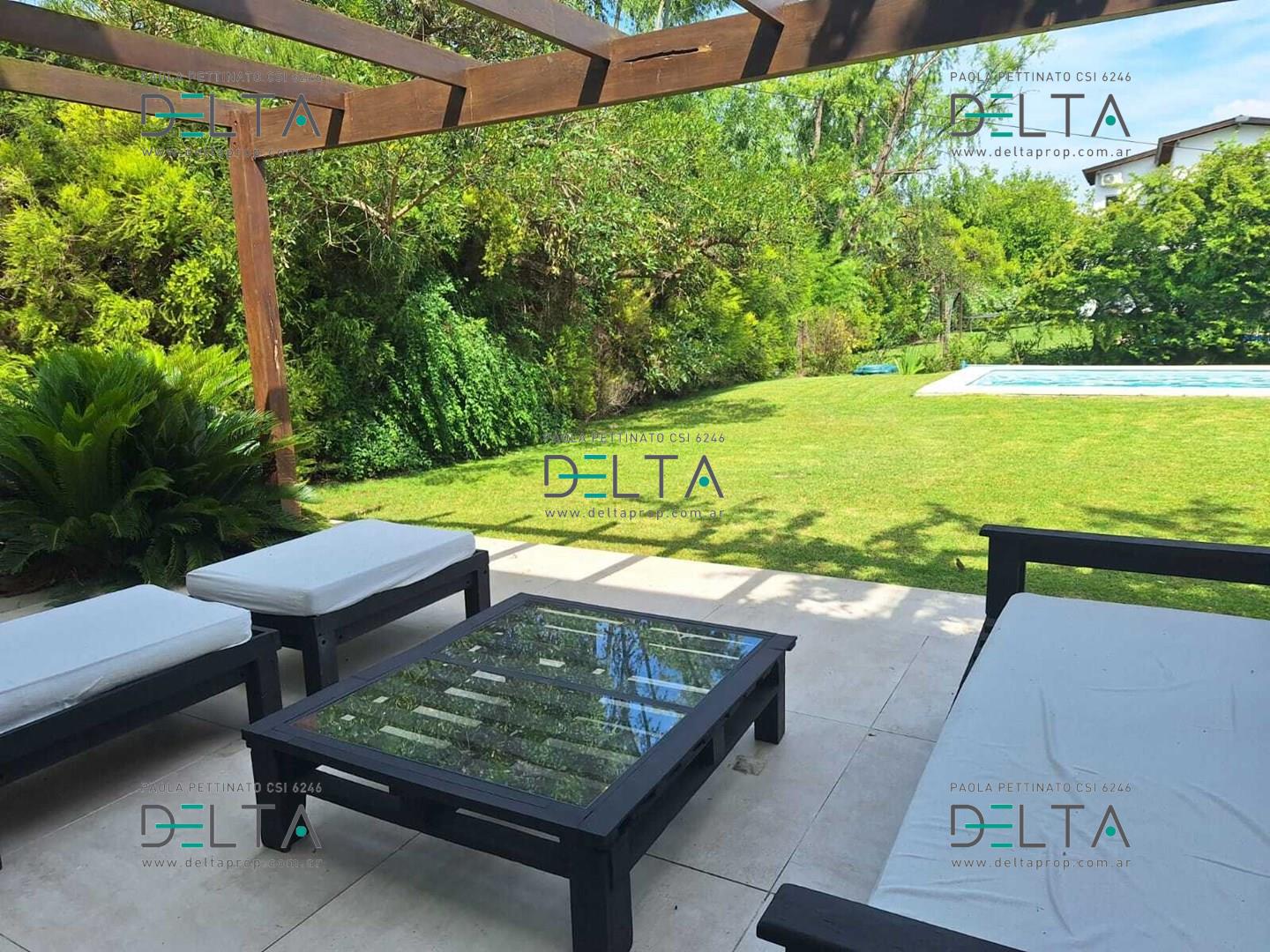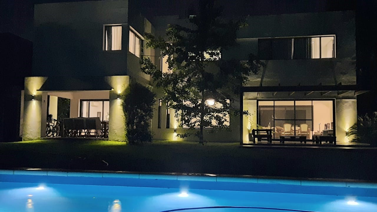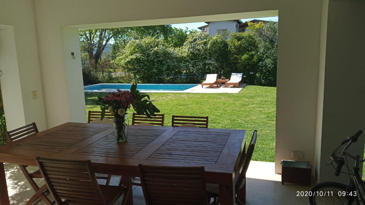 Casa de 250 metros sobre un lote interno en esquina de 800 metros en el barrio talar del lago 2. Planta Baja : Gran living comedor con chimenea y ventanales que dan a una amplia galería. Cocina separada con family, tv Y aire acondicionado frio/calor, lavavajilla y demás implementos de cocina. Toilette de recepción. 2 galerías una con acceso al living y otra con salida desde la cocina. Mesa para 10 personas, Parrilla. Gran jardín con muy buena arboleda .Pileta 8 x 4 y solarium. Iluminación exterior. Riego automático. Planta Alta: 4 dormitorios mas escritorio. Máster suite de 30 metros con tv de 50 pulgadas y aire acondicionado frio/calor baño con jacuzzi y ducha aparte. Segundo dormitorio con cama doble de 1.40 con tv y aire acondicionado frio/calor. 2 dormitorios mas uno con cama doble el otro con 2 camas simples. Ambos poseen aires acondicionados frio/calor y uno de ellos con TV. Calefacción por losa radiante.