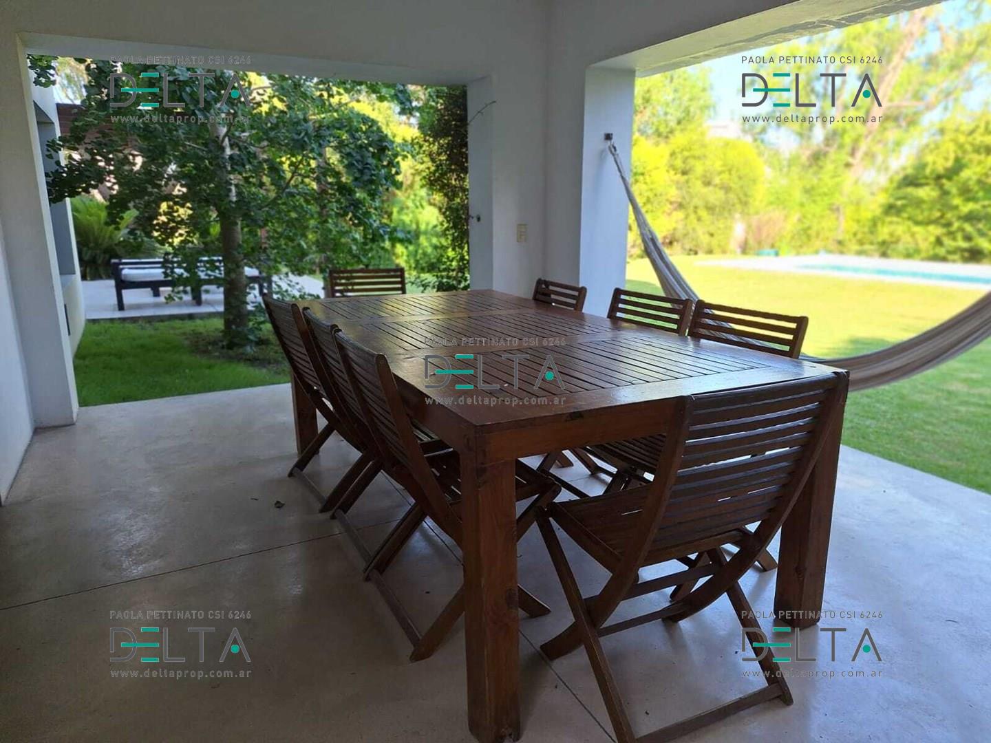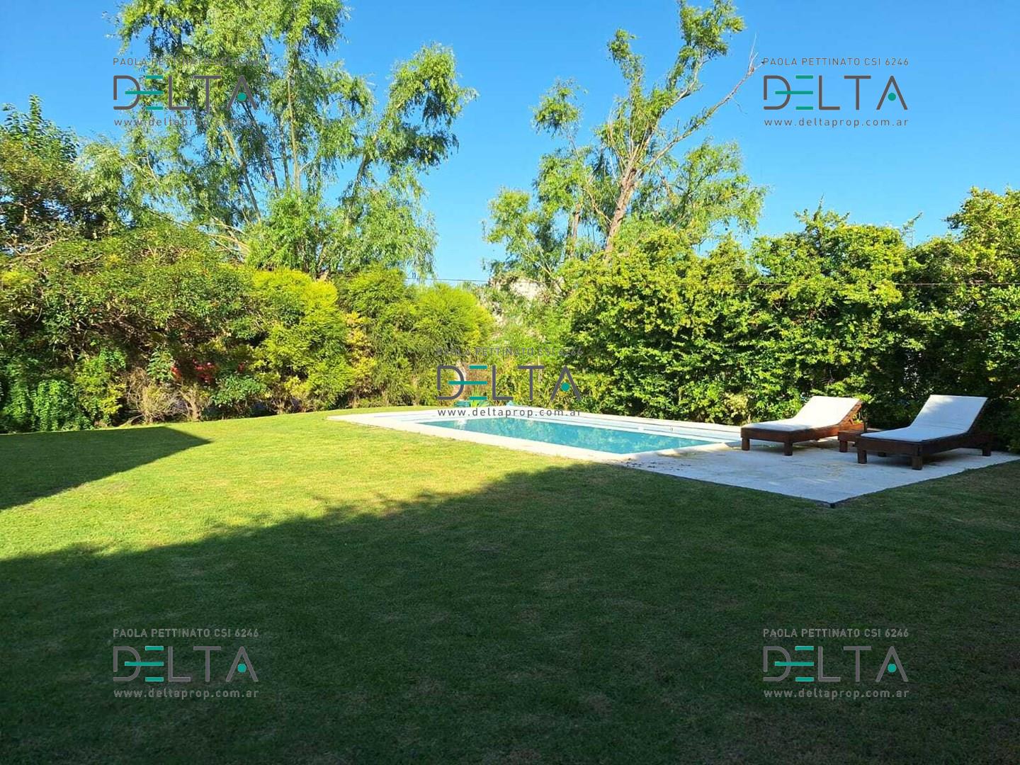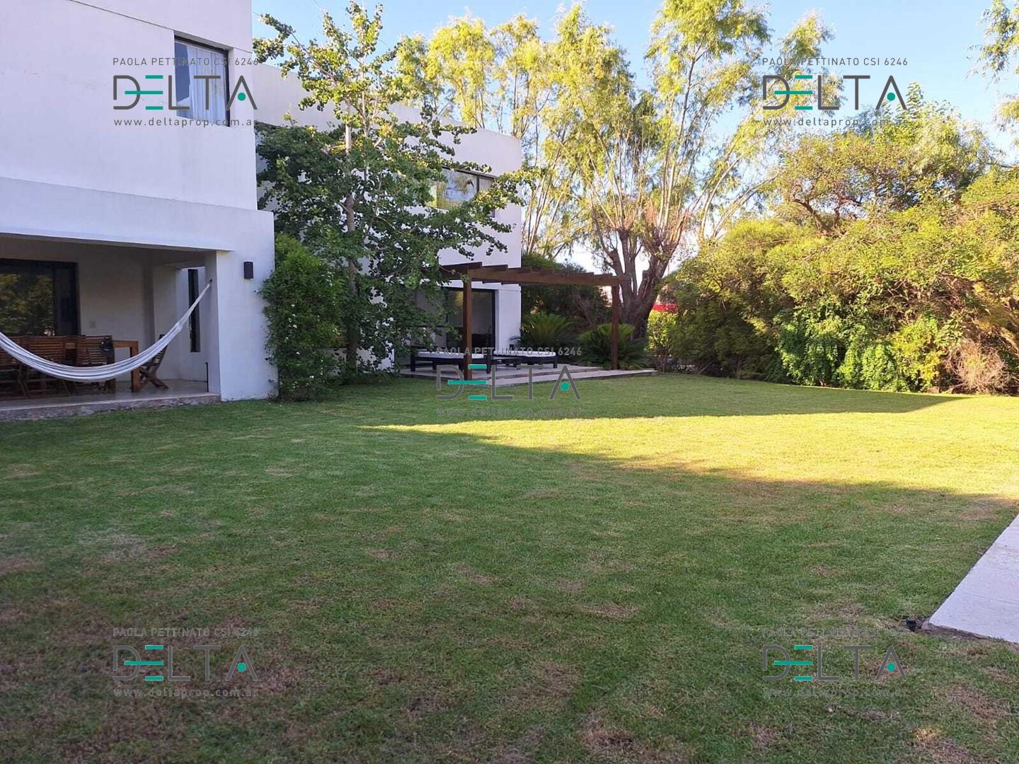 Casa de 250 metros sobre un lote interno en esquina de 800 metros en el barrio talar del lago 2. Planta Baja : Gran living comedor con chimenea y ventanales que dan a una amplia galería. Cocina separada con family, tv Y aire acondicionado frio/calor, lavavajilla y demás implementos de cocina. Toilette de recepción. 2 galerías una con acceso al living y otra con salida desde la cocina. Mesa para 10 personas, Parrilla. Gran jardín con muy buena arboleda .Pileta 8 x 4 y solarium. Iluminación exterior. Riego automático. Planta Alta: 4 dormitorios mas escritorio. Máster suite de 30 metros con tv de 50 pulgadas y aire acondicionado frio/calor baño con jacuzzi y ducha aparte. Segundo dormitorio con cama doble de 1.40 con tv y aire acondicionado frio/calor. 2 dormitorios mas uno con cama doble el otro con 2 camas simples. Ambos poseen aires acondicionados frio/calor y uno de ellos con TV. Calefacción por losa radiante.