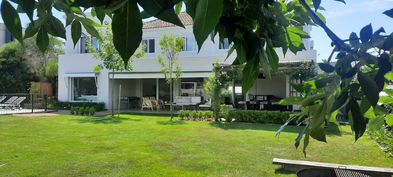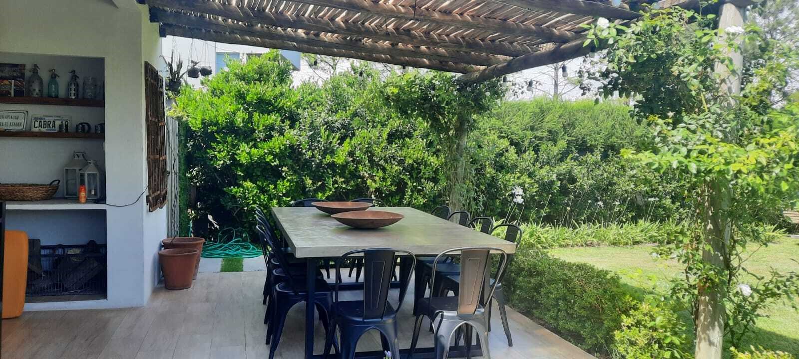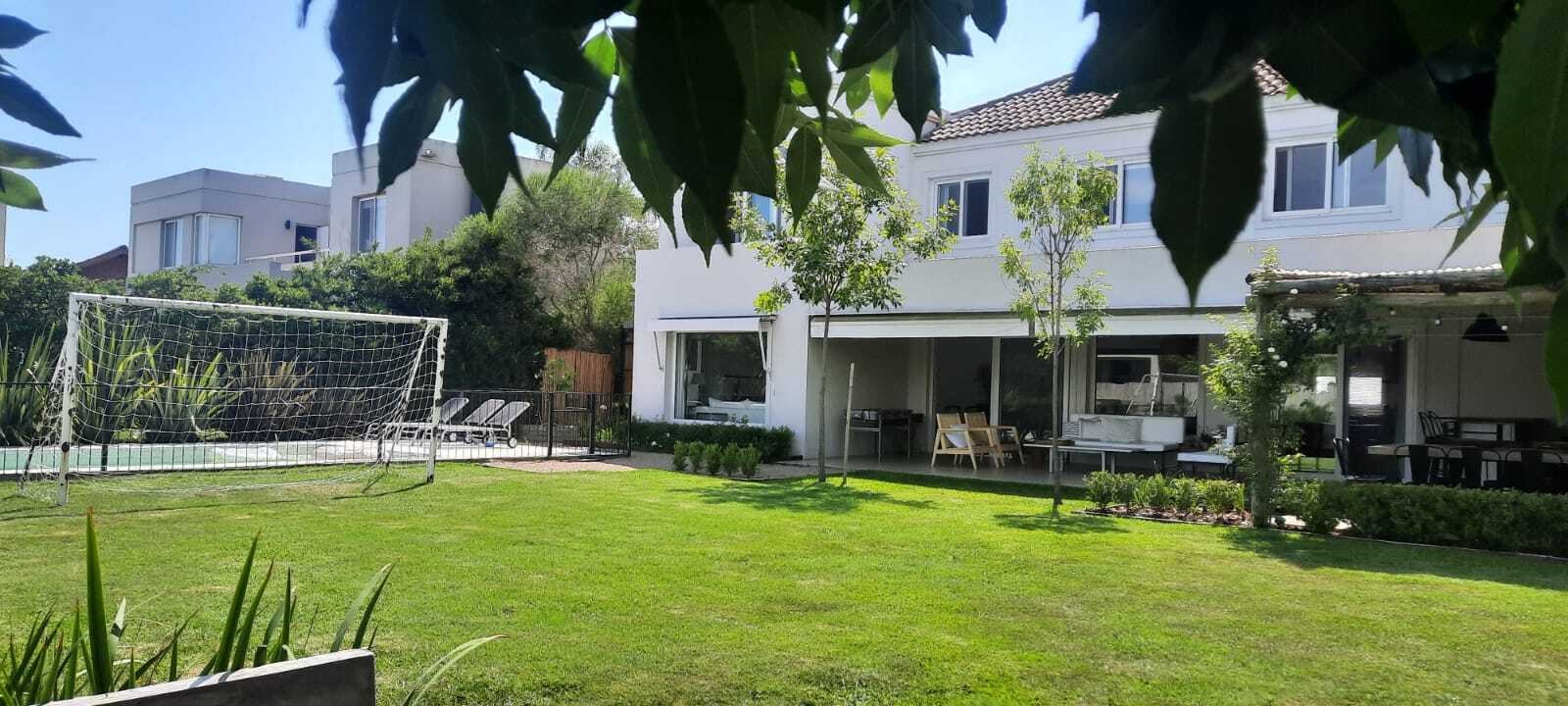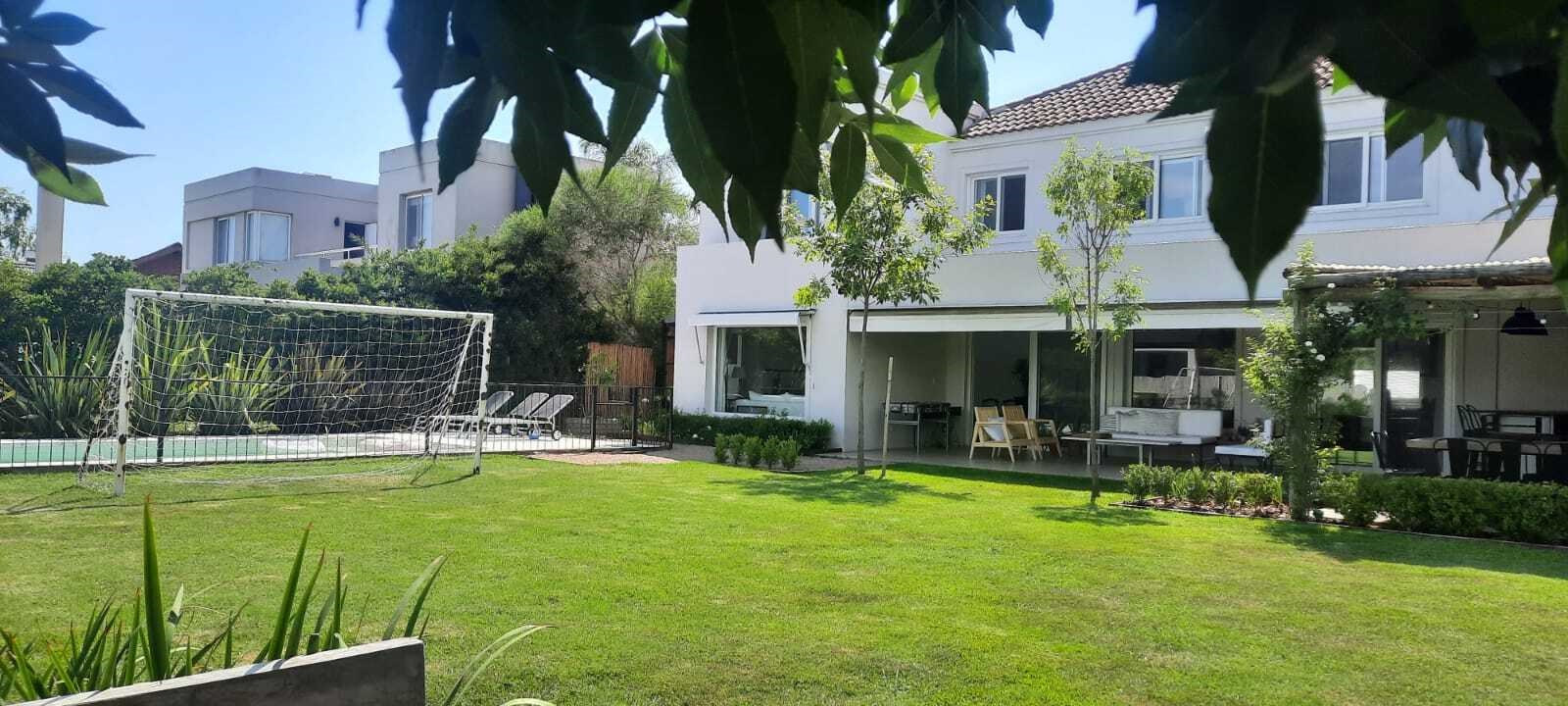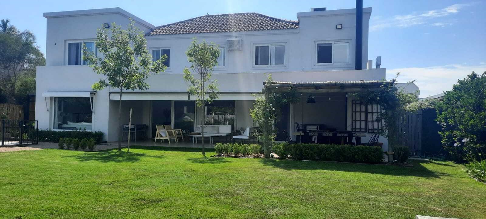 EXCELENTE CASA SOBRE LOTE INTERNO EN TALAR DEL LAGO 2. PLANTA BAJA :LIVING COMEDOR AMPLIO CON SALIDA A LA GALERIA. COCINA INDEPENDIENTE CON COMEDOR DIARIO Y PLAYROOM CONTINUO, LA VADERO INDEPENDIENTE CON FREEZER. PLANTA ALTA: 4 DORMITORIOS. EL PRINCIPAL EN SUITE CON VESTIDOR, DOS DORMITORIO CON 2 SOMMIER CADA UNO, OTRO DORMITORIO CON CAMA SIMPLE. ESTAR O PLAYROOM CON CAMA Y OTRA QUE SE SACA DE ABAJO. TODOS LOS AMBIENTES CON AIRE ACONDICIONADO MENOS EL PLAYROOM DE ARRIBA QUE TIENE VENTILADOR DE TECHO. EXTERIOR: AMPLIA GALERIA CON MESA GRANDE Y TOLDOS ELECTRICOS, LIVING EXTERIOR MUY COMODO, PARRILLA, FOGONERO, SILLONES BAJO EL ARBOL, PILETA CON VENECITAS Y SOLARIUM. GRAN JARDIN CON MUY LINDA PARQUIZACION.