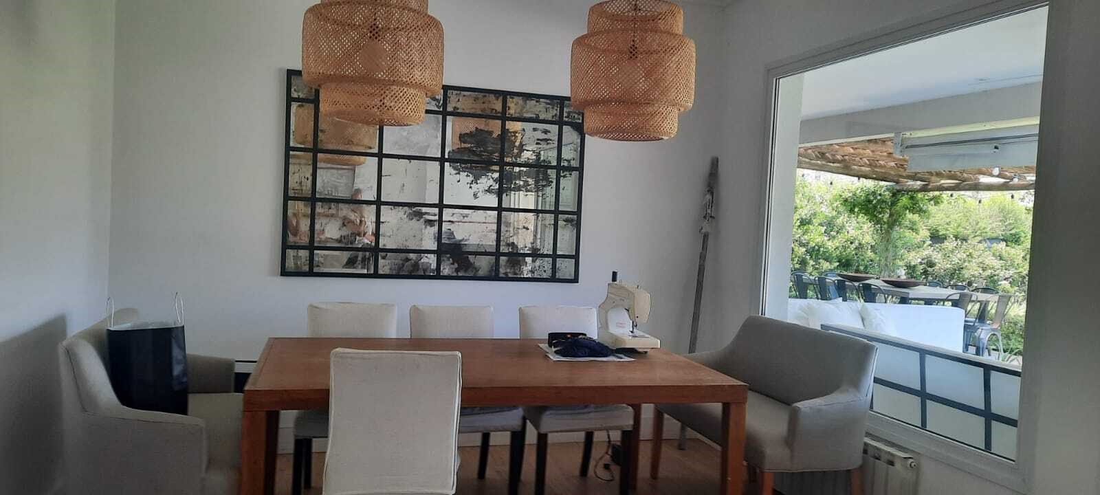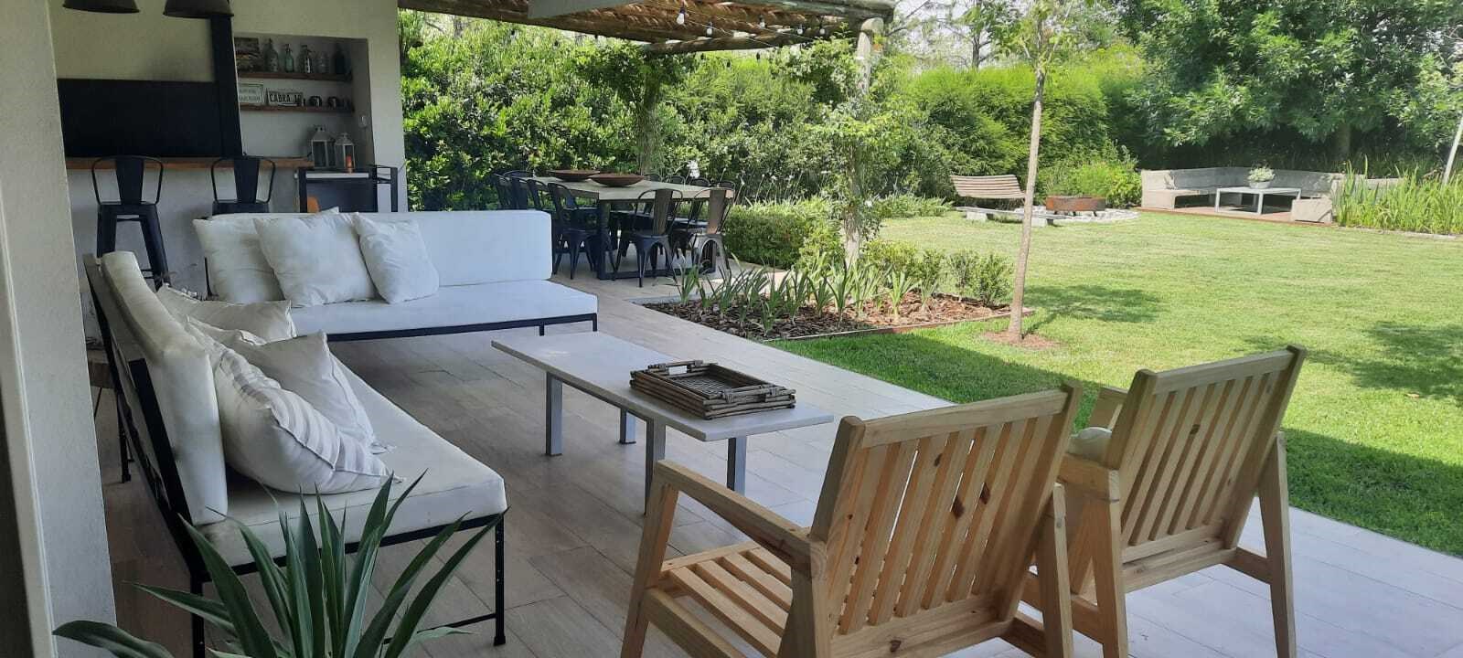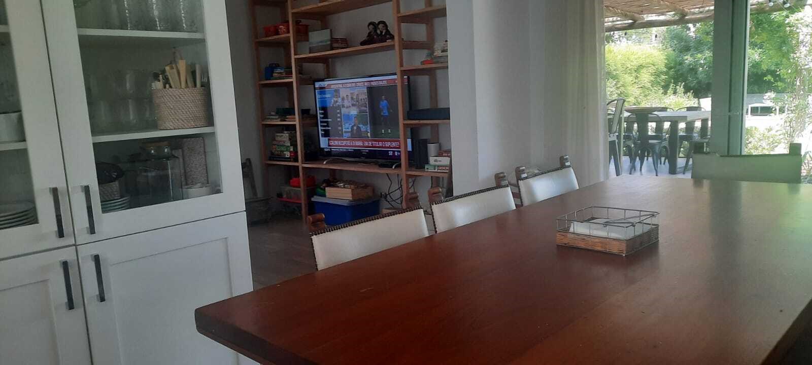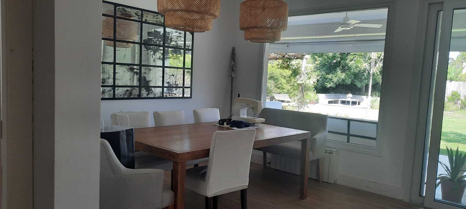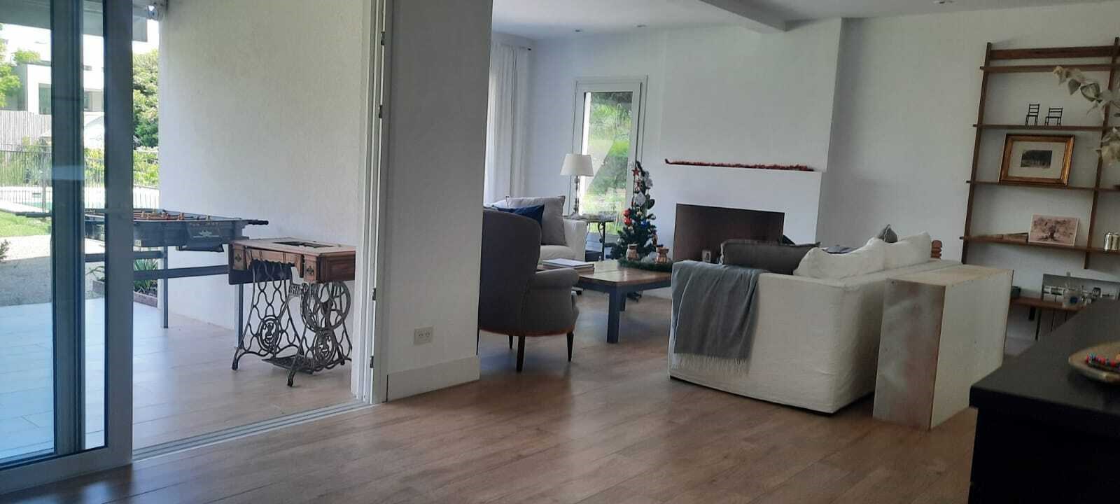 EXCELENTE CASA SOBRE LOTE INTERNO EN TALAR DEL LAGO 2. PLANTA BAJA :LIVING COMEDOR AMPLIO CON SALIDA A LA GALERIA. COCINA INDEPENDIENTE CON COMEDOR DIARIO Y PLAYROOM CONTINUO, LA VADERO INDEPENDIENTE CON FREEZER. PLANTA ALTA: 4 DORMITORIOS. EL PRINCIPAL EN SUITE CON VESTIDOR, DOS DORMITORIO CON 2 SOMMIER CADA UNO, OTRO DORMITORIO CON CAMA SIMPLE. ESTAR O PLAYROOM CON CAMA Y OTRA QUE SE SACA DE ABAJO. TODOS LOS AMBIENTES CON AIRE ACONDICIONADO MENOS EL PLAYROOM DE ARRIBA QUE TIENE VENTILADOR DE TECHO. EXTERIOR: AMPLIA GALERIA CON MESA GRANDE Y TOLDOS ELECTRICOS, LIVING EXTERIOR MUY COMODO, PARRILLA, FOGONERO, SILLONES BAJO EL ARBOL, PILETA CON VENECITAS Y SOLARIUM. GRAN JARDIN CON MUY LINDA PARQUIZACION.