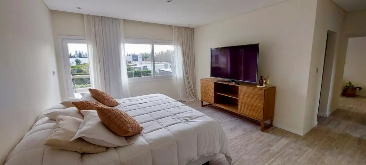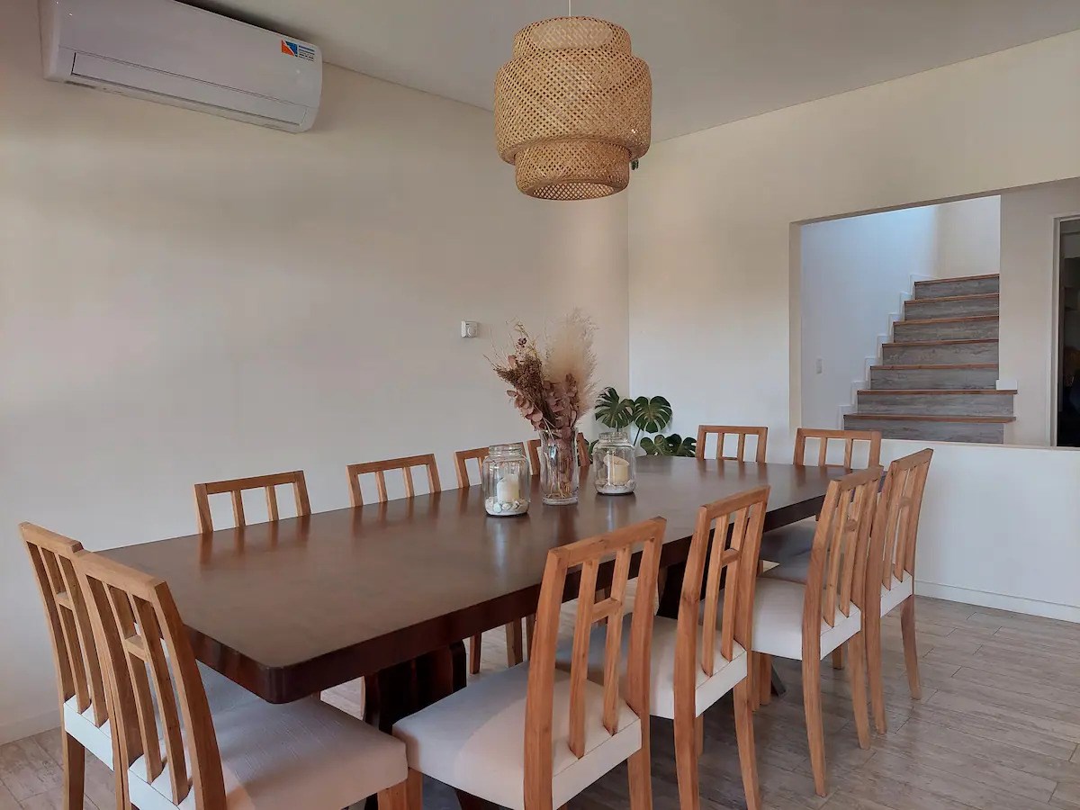 Es una casa ideal para disfrutar con la familia! Cuenta con 4 habitaciones amplias , pileta con cerco, jardín, galería amplia y parrilla. Los ambientes son muy luminosos, amplios y cálidos. Ubicado en un lote interno del Barrio con orientacion sudoeste. PB: Hall de entrada al living y comedor con AA y salida a galería, Toilette de recepción con ducha, cocina amplia y muy equipada con family integrado, suite ( cama queen ) con baño completo, vestidor y vista a la pileta. Lavadero amplio con 2da Heladera, acceso independente. Dependencias amplia PA: Estar intimo + 3 dormitorios, suite principal( cama king ) con vestidor y baño completo, 2 dormitorios amplios ( uno de ellos con 2 camas individuales y el otro con una cama queen ) con AA , buenos placares, cortinas de black out en los dormitorios. Exterior: Estacionamiento para 6 autos en el acceso vehicular, gran galería con parrilla, jardín con pileta cercada, espacio de fogón. Todos los ambientes con AA, pisos de cemento alisado y cerámicos, aberturas de aluminio con DVH. Delta Propiedades, Martillera Paola Espinosa CMCPSI: 6246 La publicación de este inmueble es sólo a título informativo Las imágenes provistas en el anuncio fueron incluidas sólo a efecto ilustrativo de esta presentación. Las medidas son aproximadas y han sido suministradas por los propietarios y/o el desarrollador.