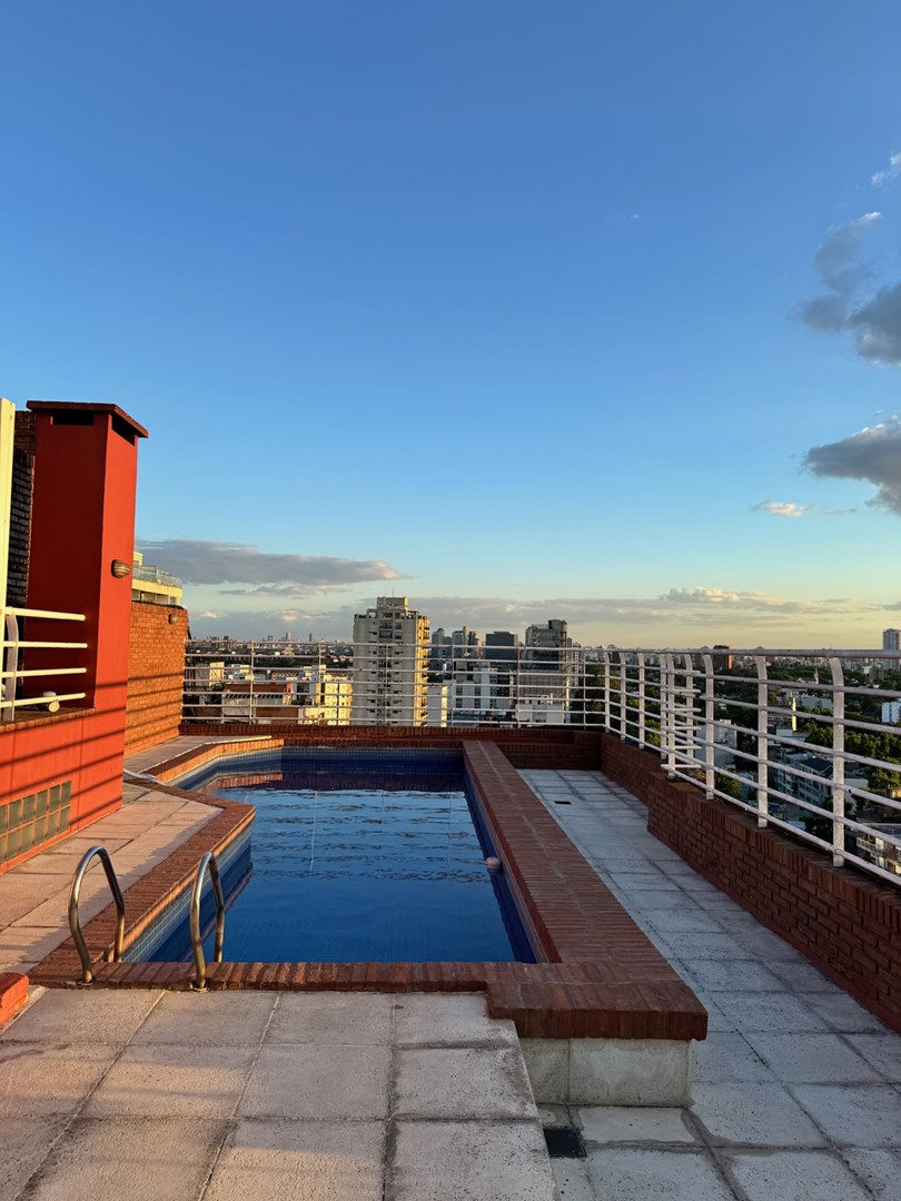 Edificio con pileta en la terraza.