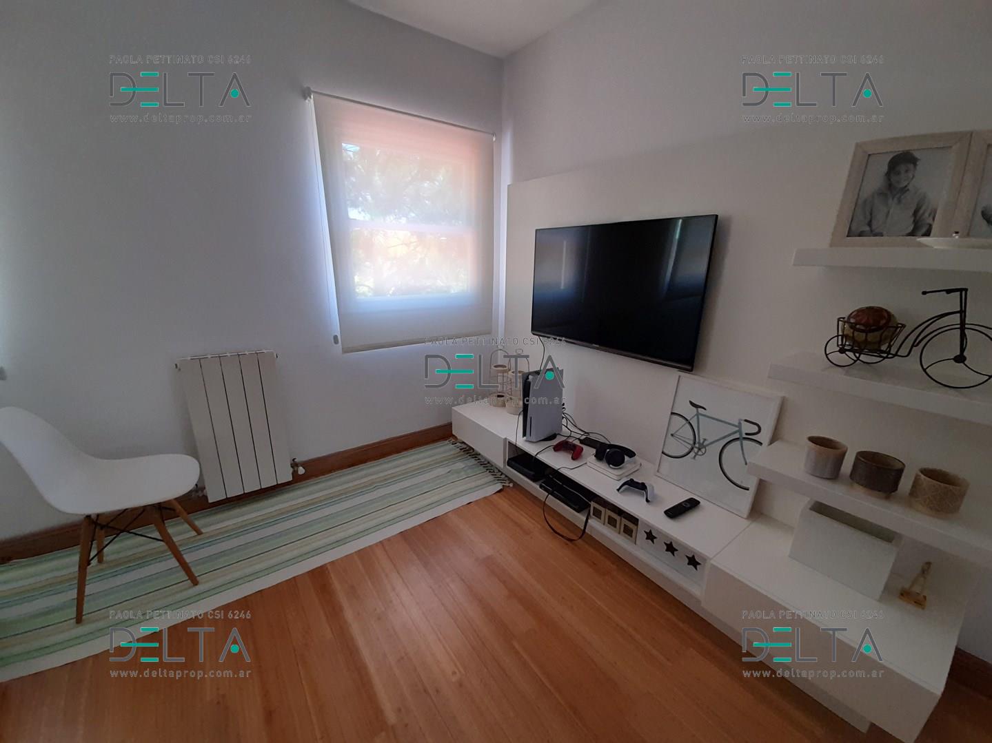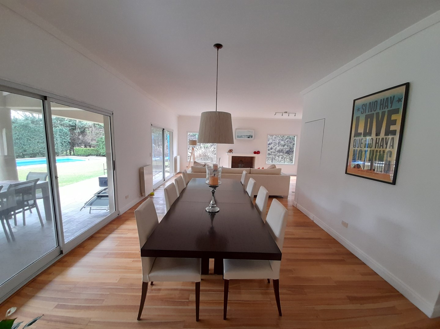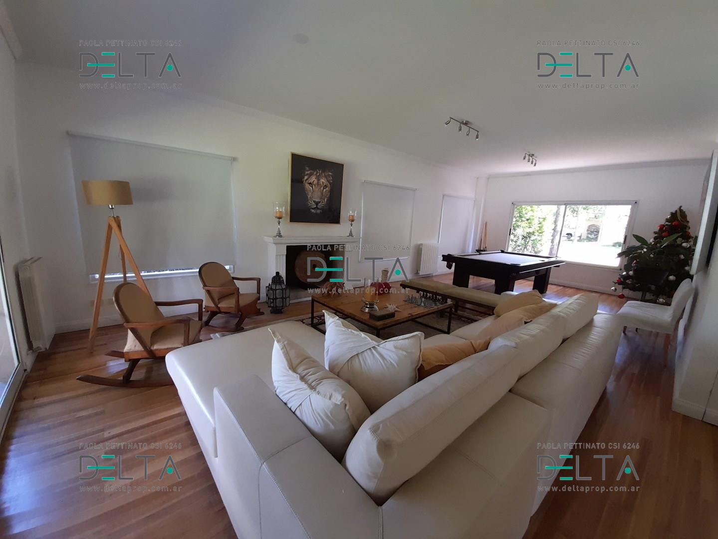 Casa en Alquiler disponible 1 al 18 de Diciembre a 2500 usd FEBRERO 4300 Más gastos. YA ALQUILAMOS ENERO, tres 3 dormitorios + playroom. Impecable. Cocheras Techadas, living comedor amplio en L con Aire Acondicionado, cocina moderna con comedor diario, galería fresca orientación Norte con ventilador de techo. Los tres dormitorios tienen Aire y camas DOBLE PLAZA. Master suite con vestidor, y baño, Playroom con TV. Dos dormitorios con Aire. que comparten un baño Arriba Playroom con sillon y tele. Pileta con filtro, jardín Parquizado, Parrilla. bajo el techo de losa de la galería, Galería con mesa larga y sillones de living dependencia. En Talar del Lago hay club house con restaurante a orillas del lago, gimnasio, canchas de tenis y futbol, LAGO para kayac o deportes nauticos a vela, muelle, playita, bajada al lago, áreas verdes comunes. Piletas y colonia de verano. SUM. Acceso todo por autopista desde Bancalari Nordelta ( en gps dice av. Nordelta) Shopping Los Lirios en la entrada del barrio, centro médico y muchos centros comerciales y gastronómicos cercanos (en Santa Bárbara, Pacheco, Nordelta, Talar del Lago se encuentra en General Pacheco, y está rodeado de barrios privados, y del colegio privado con seguridad Hans Cristian Andersen. TALAR DEL LAGO I es un barrio con 667 lotes todo consolidado, sin terrenos vacíos ni obras cerca. Cuenta con un lago de 8 ha. con muelle sobre el lago. Shopping Los Lirios en la entrada, El Acceso: desde Palermo son 35 minutos aprox. según la hora. tiene la entrada secundaria sobre la calle Echeverria, General Pacheco con verdulería y almacenes walking distance. Colectivos 723 y 60, y Mary Go con muchos horarios para ir a CABA.