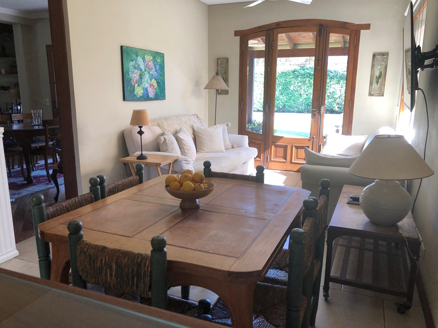 Casa en alquiler Temporal. DICIEMBRE ENERO FEBRERO CONSULTE MARZO. Hermosa casa de buena calidad, todos los ambientes con aire, Jardín bien parquizado con pileta, en terreno de 800 metros. Consultar disponibilidad y valores. Ideal para gente mayor, dormitorios y baños completos en planta baja, y suite principal en planta alta. PLANTA BAJA: Cocina equipada con lavavajillas, comedor diario/play con aire acondicionado, living con aire, con ventanales de piso a techo a la galeria y jardín. Escritorio con sillon cama con aire, dormitorio con dos camas y banio completo y otro dormitorio con cama de 1 plaza con carrito que sale de abajo de 1 plaza, con otro banio en total Plata Baja 5 plazas y 2 banios completos PLANTA ALTA: suite principal con aire ac. con balcón aterrazado con hermosas vistas al verde y a la pileta. EXTERIOR; galería parrilla tradicional, parrilla redonda, Toldos, mesa para asado a la que se suma otra mesa en caso de reunión. PILETA CON FILTRO. CON LUCES, RIEGO. Reposeras y muebles de jardín. Ventiladores en galería y otros ambientes. JARDÍN: muy bien cuidado y tupido, flores y plantas, jazmines árboles frutales, Santa Rita de vibrantes colores, Ideal personas mayores. TALAR DEL LAGO es un excelente barrio cerrado con club house restaurante, lago apto deportes náuticos por su tamaño, canchas de tenis y futbol, placita de juegos, aerosenda, gym. SHOPPING cercano, walking distance, CENTRO MEDICO cercano, CENTROS COMERCIALES cercanos. Acceso Bancalari Nordelta, todo por autopista y por General Pacheco.. GASTOS APROXIMADOS A CARGO DEL LOCATARIO: Gastos Fijos Expensas aprox 650.000 pesos, Jardinero 80.000 Piletero 90.000 Wifi, Gastos Variables, luz y gas, segun el consumo del Locatario.