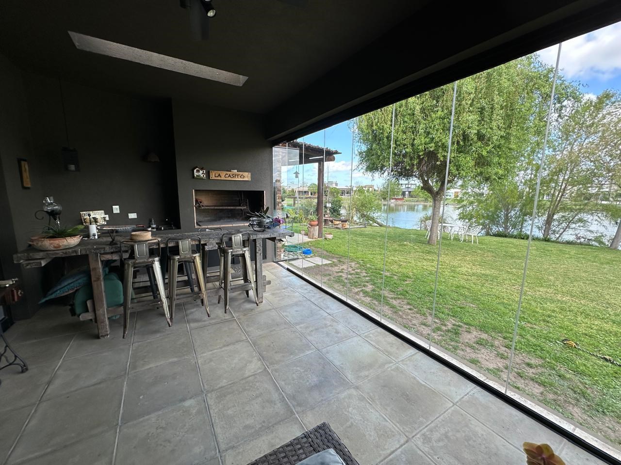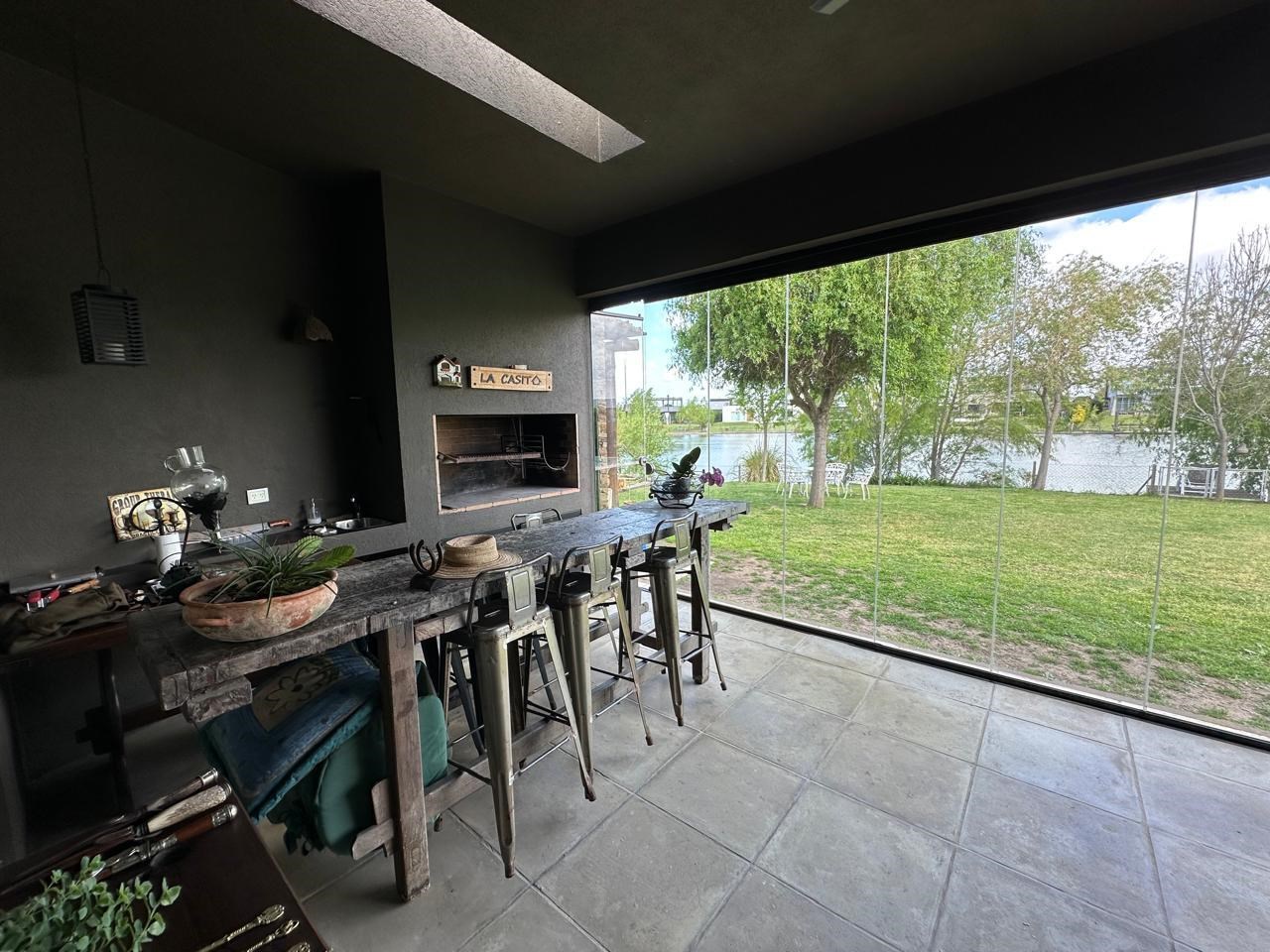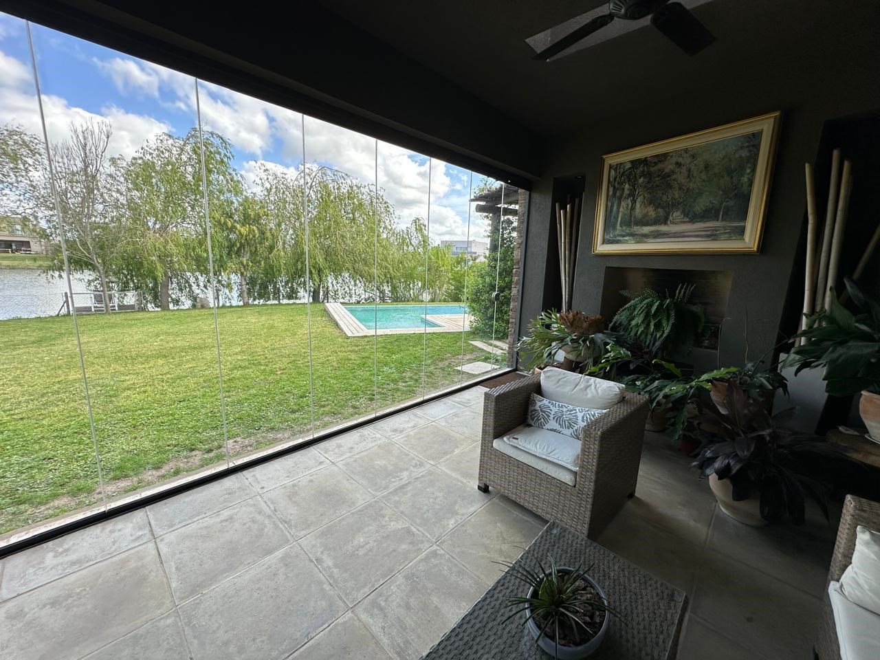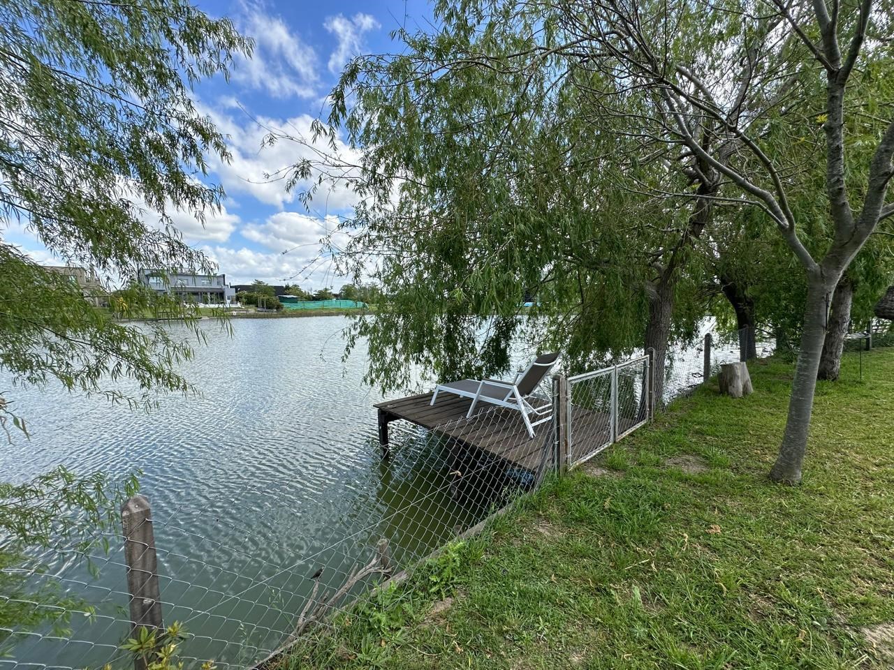 Casa a la venta en una planta a la laguna. Todos los ambientes principales tiene vista al agua. El ingreso a la casa es a través de un patio interno con estanques naturales con piedras en ambos lados y en uno de ellos tiene una cascada. Living-comedor con pared vidriada con salida a la galería y vista al laguna. Dormitorio principal con vista al agua, vestidor, espacio para escritorio muy cómodo, baño con doble bacha, ducha y bañera con hidromasaje. Segundo dormitorio con placard de pared a pared, con vista y salida al jardín y a la laguna. Cocina cómoda con espacio para lavavajillas con entrada independiente desde la cochera. Lavadero y dependencia de servicio funcional y con opción de 3er dormitorio o escritorio independiente. Galería con cerramiento vidriado con piso radiante , con parrilla, además posee una galería externa rústica. Jardín con riego automático, con muelle, espacio para fogonero. Pileta revestida con venecitas y playa húmeda. Cochera semi cubierta con ingreso directo a la cocina. Detalles de construcción Posee de mármol trasvertido importado de Turquía en living-comedor, en toda la suite principal, el resto de la casa tiene porcelanato de excelente calidad, aberturas DVH doble vidrio con mosquiteros. Los sanitarios son marca Ferrum. La calefacción es por losa radiante e incluye galería exterior (con circuitos independientes). Circuito de grupo electrógeno instalado y preset en tablero principal. Tablero y circuito de alarmas. Doble tanque de agua de 1500 lts, cisterna y bomba presurizadora Rowa. Preparada para construcción de una segunda planta. Las expensas incluyen Arba, tasa municipal y Aysa. El barrio Cantón Norte cuenta con un club house y seguridad las 24 hs. El complejo de El Cantón tiene cancha de golf de 18 hoyos donde hay un restaurant. Además tiene un área deportiva donde hay pileta climatizada cubierta, pileta descubierta, canchas de futbol, canchas de tenis, área de juegos infantiles,confitería y restaurante. Importante: Las medidas son aproximadas. Las fotos y descripciones son ilustrativas, puede sufrir variaciones al momento de la compra y/o alquiler.