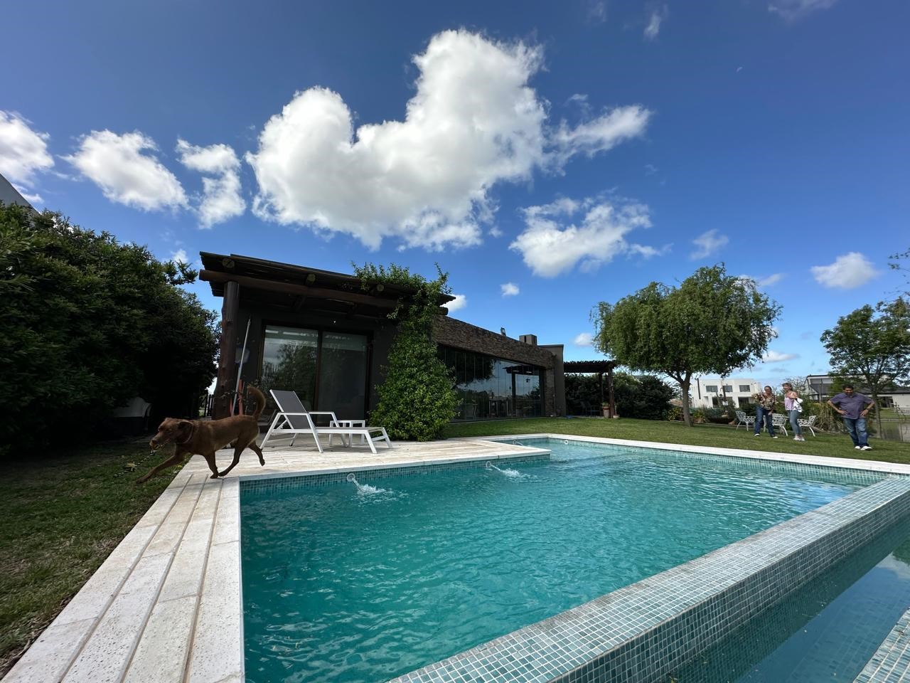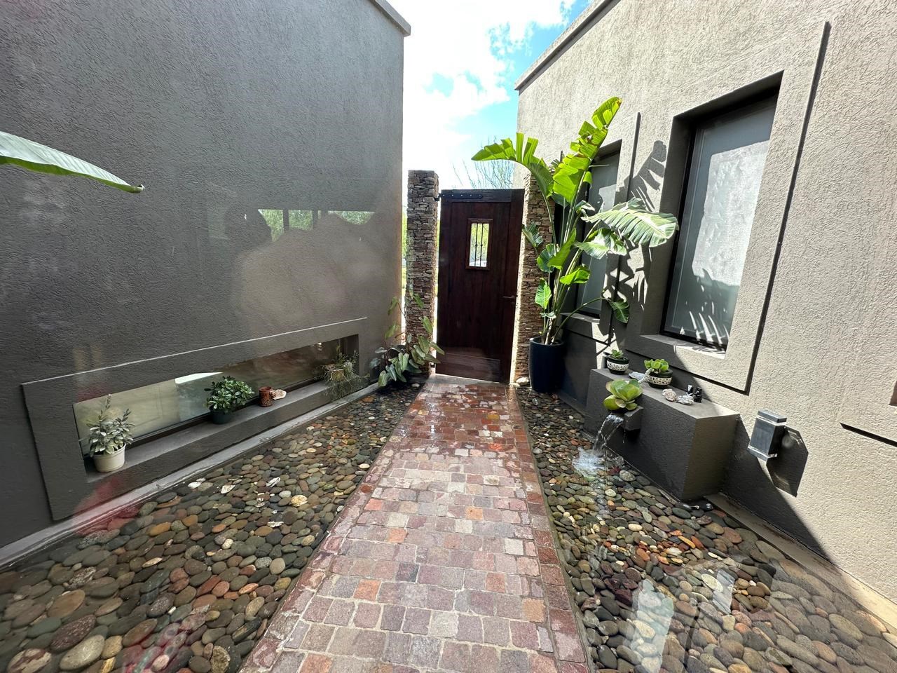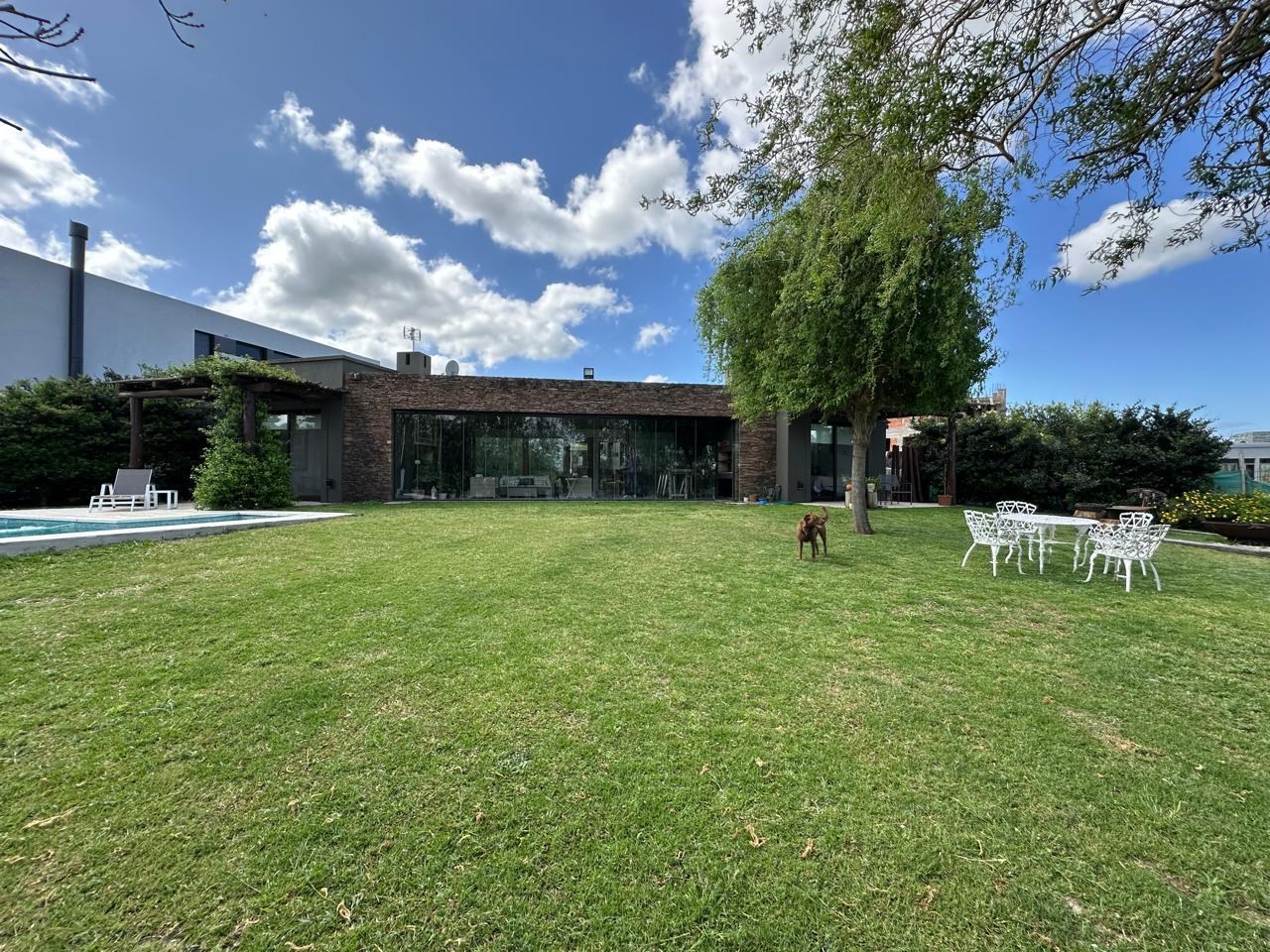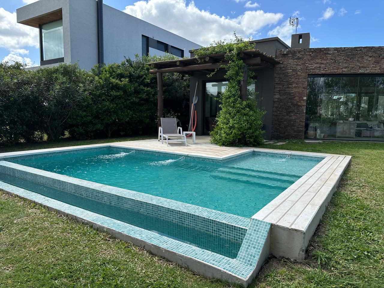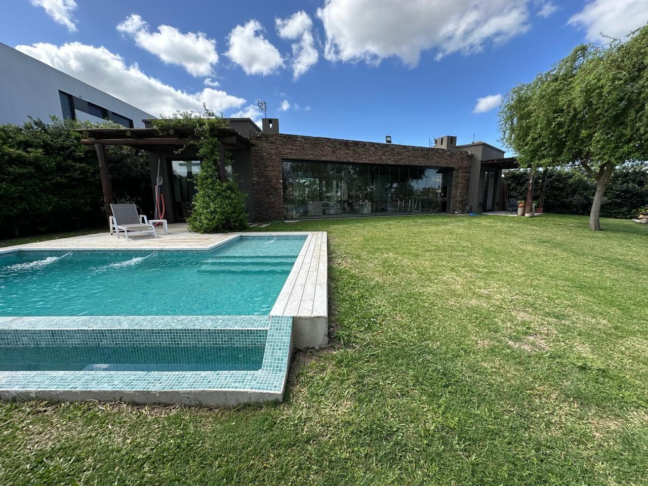 Casa a la venta en una planta a la laguna. Todos los ambientes principales tiene vista al agua. El ingreso a la casa es a través de un patio interno con estanques naturales con piedras en ambos lados y en uno de ellos tiene una cascada. Living-comedor con pared vidriada con salida a la galería y vista al laguna. Dormitorio principal con vista al agua, vestidor, espacio para escritorio muy cómodo, baño con doble bacha, ducha y bañera con hidromasaje. Segundo dormitorio con placard de pared a pared, con vista y salida al jardín y a la laguna. Cocina cómoda con espacio para lavavajillas con entrada independiente desde la cochera. Lavadero y dependencia de servicio funcional y con opción de 3er dormitorio o escritorio independiente. Galería con cerramiento vidriado con piso radiante , con parrilla, además posee una galería externa rústica. Jardín con riego automático, con muelle, espacio para fogonero. Pileta revestida con venecitas y playa húmeda. Cochera semi cubierta con ingreso directo a la cocina. Detalles de construcción Posee de mármol trasvertido importado de Turquía en living-comedor, en toda la suite principal, el resto de la casa tiene porcelanato de excelente calidad, aberturas DVH doble vidrio con mosquiteros. Los sanitarios son marca Ferrum. La calefacción es por losa radiante e incluye galería exterior (con circuitos independientes). Circuito de grupo electrógeno instalado y preset en tablero principal. Tablero y circuito de alarmas. Doble tanque de agua de 1500 lts, cisterna y bomba presurizadora Rowa. Preparada para construcción de una segunda planta. Las expensas incluyen Arba, tasa municipal y Aysa. El barrio Cantón Norte cuenta con un club house y seguridad las 24 hs. El complejo de El Cantón tiene cancha de golf de 18 hoyos donde hay un restaurant. Además tiene un área deportiva donde hay pileta climatizada cubierta, pileta descubierta, canchas de futbol, canchas de tenis, área de juegos infantiles,confitería y restaurante. Importante: Las medidas son aproximadas. Las fotos y descripciones son ilustrativas, puede sufrir variaciones al momento de la compra y/o alquiler.