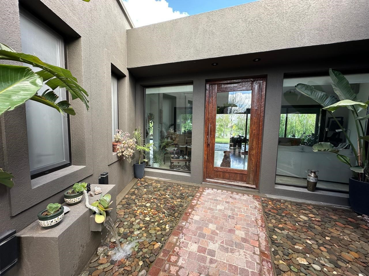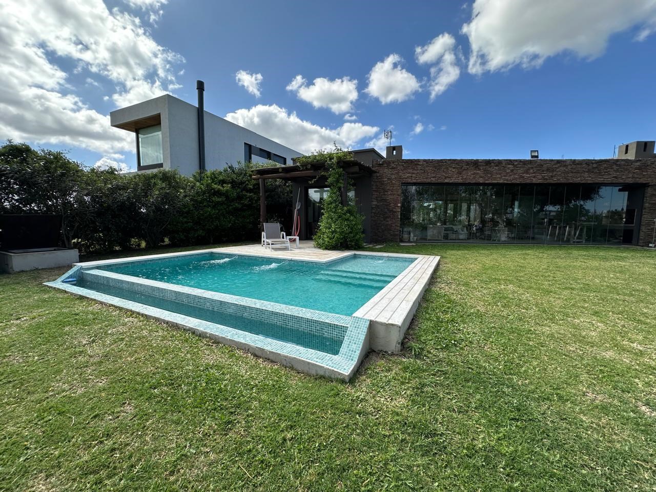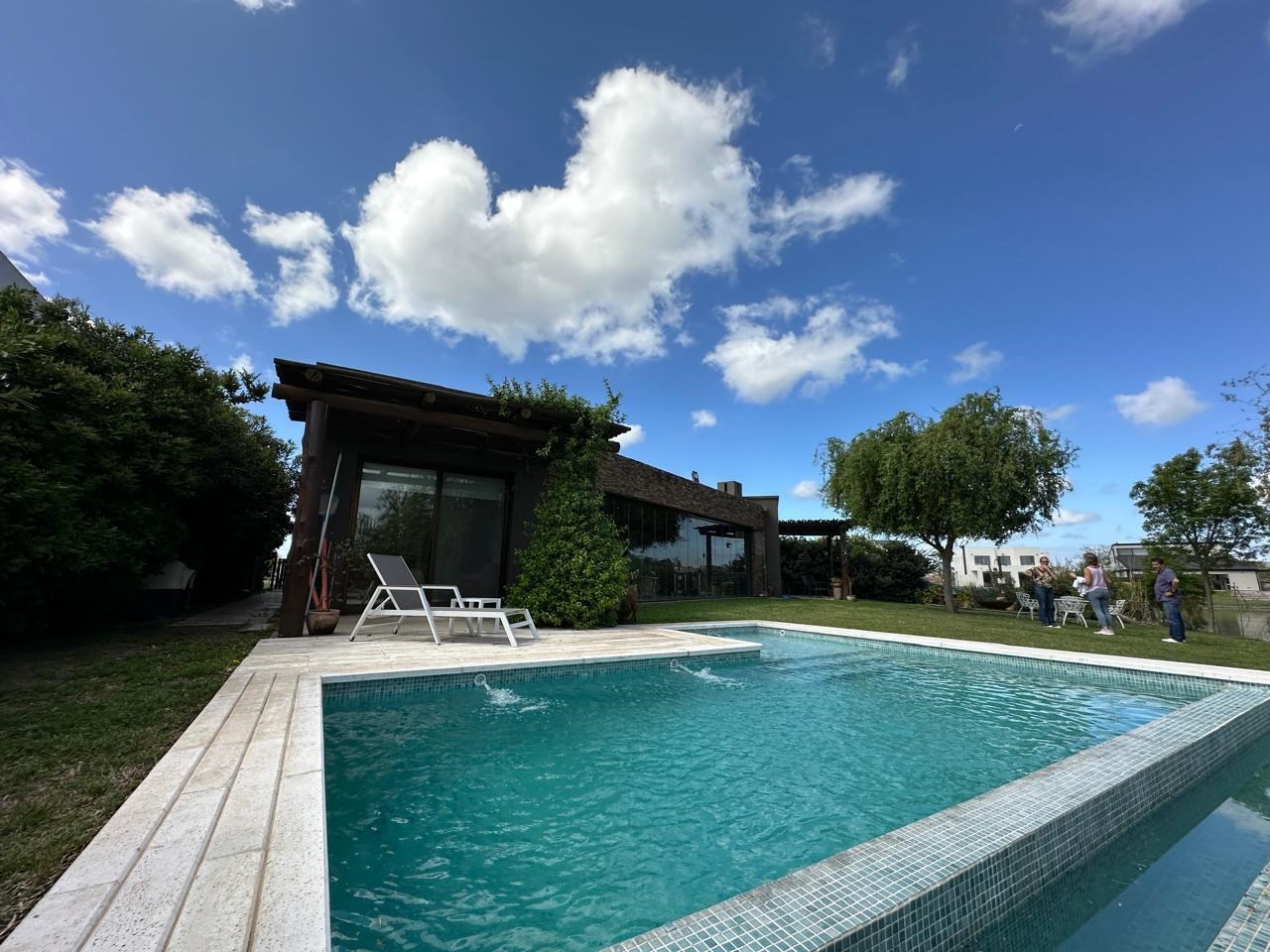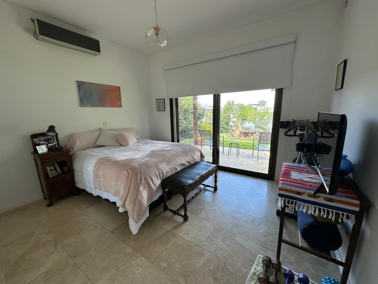 Casa a la venta en una planta a la laguna. Todos los ambientes principales tiene vista al agua. El ingreso a la casa es a través de un patio interno con estanques naturales con piedras en ambos lados y en uno de ellos tiene una cascada. Living-comedor con pared vidriada con salida a la galería y vista al laguna. Dormitorio principal con vista al agua, vestidor, espacio para escritorio muy cómodo, baño con doble bacha, ducha y bañera con hidromasaje. Segundo dormitorio con placard de pared a pared, con vista y salida al jardín y a la laguna. Cocina cómoda con espacio para lavavajillas con entrada independiente desde la cochera. Lavadero y dependencia de servicio funcional y con opción de 3er dormitorio o escritorio independiente. Galería con cerramiento vidriado con piso radiante , con parrilla, además posee una galería externa rústica. Jardín con riego automático, con muelle, espacio para fogonero. Pileta revestida con venecitas y playa húmeda. Cochera semi cubierta con ingreso directo a la cocina. Detalles de construcción Posee de mármol trasvertido importado de Turquía en living-comedor, en toda la suite principal, el resto de la casa tiene porcelanato de excelente calidad, aberturas DVH doble vidrio con mosquiteros. Los sanitarios son marca Ferrum. La calefacción es por losa radiante e incluye galería exterior (con circuitos independientes). Circuito de grupo electrógeno instalado y preset en tablero principal. Tablero y circuito de alarmas. Doble tanque de agua de 1500 lts, cisterna y bomba presurizadora Rowa. Preparada para construcción de una segunda planta. Las expensas incluyen Arba, tasa municipal y Aysa. El barrio Cantón Norte cuenta con un club house y seguridad las 24 hs. El complejo de El Cantón tiene cancha de golf de 18 hoyos donde hay un restaurant. Además tiene un área deportiva donde hay pileta climatizada cubierta, pileta descubierta, canchas de futbol, canchas de tenis, área de juegos infantiles,confitería y restaurante. Importante: Las medidas son aproximadas. Las fotos y descripciones son ilustrativas, puede sufrir variaciones al momento de la compra y/o alquiler.
