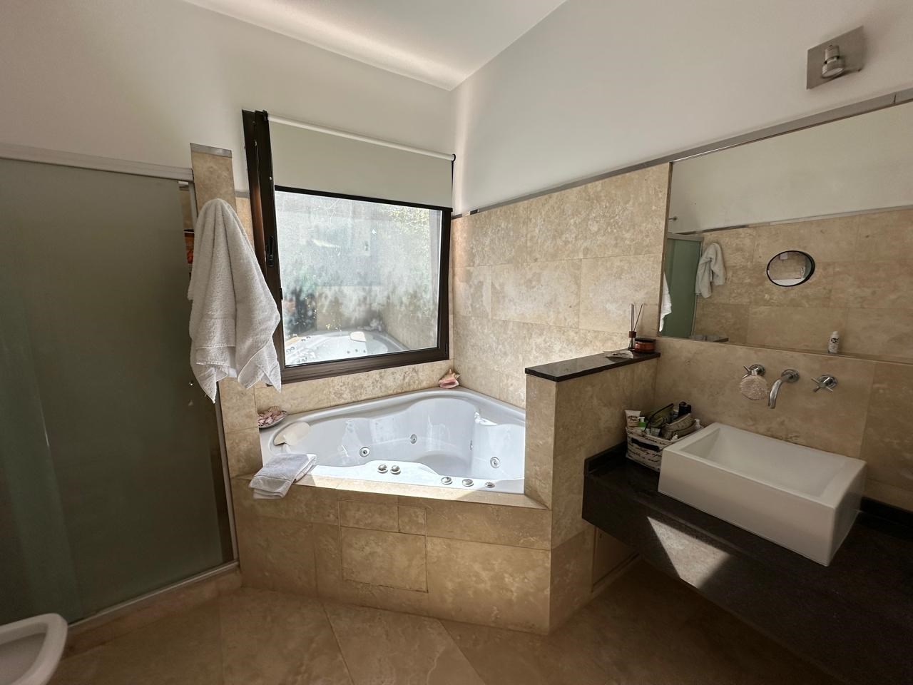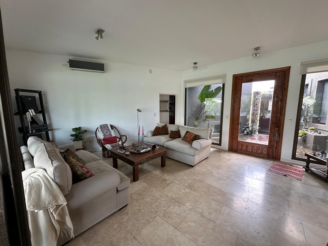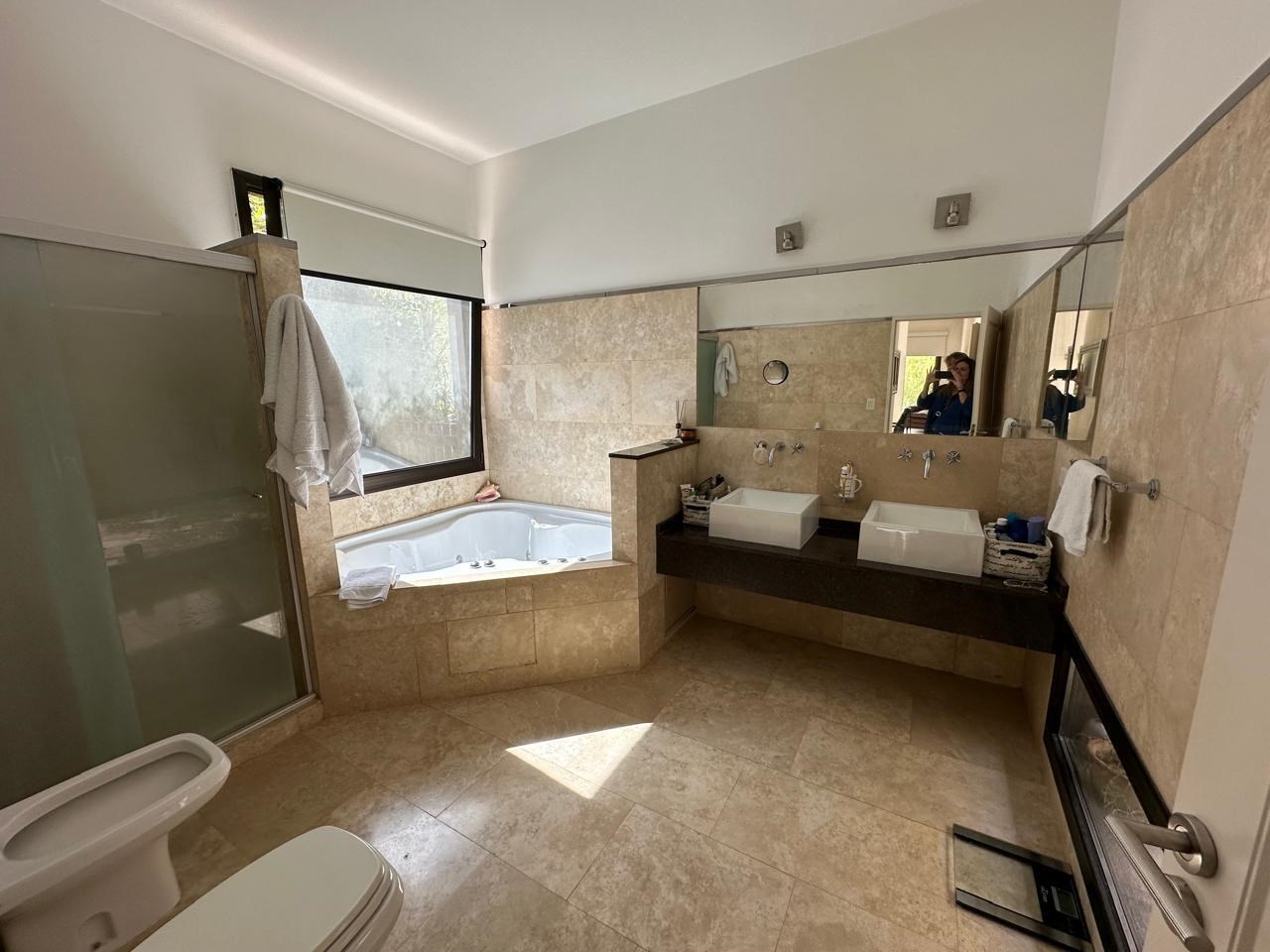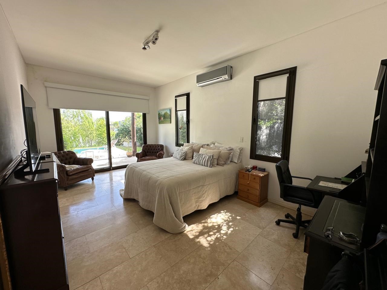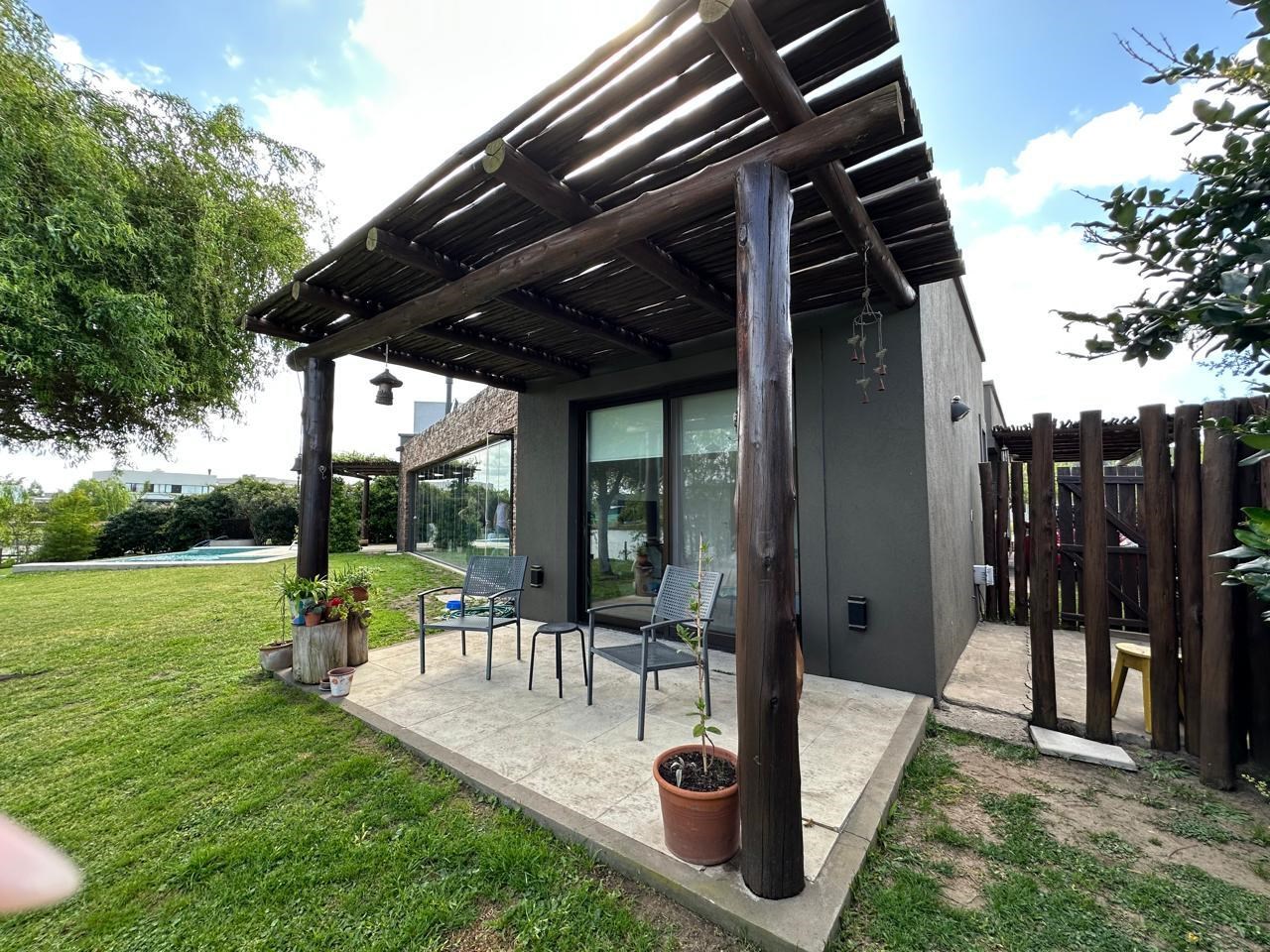 Casa a la venta en una planta a la laguna. Todos los ambientes principales tiene vista al agua. El ingreso a la casa es a través de un patio interno con estanques naturales con piedras en ambos lados y en uno de ellos tiene una cascada. Living-comedor con pared vidriada con salida a la galería y vista al laguna. Dormitorio principal con vista al agua, vestidor, espacio para escritorio muy cómodo, baño con doble bacha, ducha y bañera con hidromasaje. Segundo dormitorio con placard de pared a pared, con vista y salida al jardín y a la laguna. Cocina cómoda con espacio para lavavajillas con entrada independiente desde la cochera. Lavadero y dependencia de servicio funcional y con opción de 3er dormitorio o escritorio independiente. Galería con cerramiento vidriado con piso radiante , con parrilla, además posee una galería externa rústica. Jardín con riego automático, con muelle, espacio para fogonero. Pileta revestida con venecitas y playa húmeda. Cochera semi cubierta con ingreso directo a la cocina. Detalles de construcción Posee de mármol trasvertido importado de Turquía en living-comedor, en toda la suite principal, el resto de la casa tiene porcelanato de excelente calidad, aberturas DVH doble vidrio con mosquiteros. Los sanitarios son marca Ferrum. La calefacción es por losa radiante e incluye galería exterior (con circuitos independientes). Circuito de grupo electrógeno instalado y preset en tablero principal. Tablero y circuito de alarmas. Doble tanque de agua de 1500 lts, cisterna y bomba presurizadora Rowa. Preparada para construcción de una segunda planta. Las expensas incluyen Arba, tasa municipal y Aysa. El barrio Cantón Norte cuenta con un club house y seguridad las 24 hs. El complejo de El Cantón tiene cancha de golf de 18 hoyos donde hay un restaurant. Además tiene un área deportiva donde hay pileta climatizada cubierta, pileta descubierta, canchas de futbol, canchas de tenis, área de juegos infantiles,confitería y restaurante. Importante: Las medidas son aproximadas. Las fotos y descripciones son ilustrativas, puede sufrir variaciones al momento de la compra y/o alquiler.