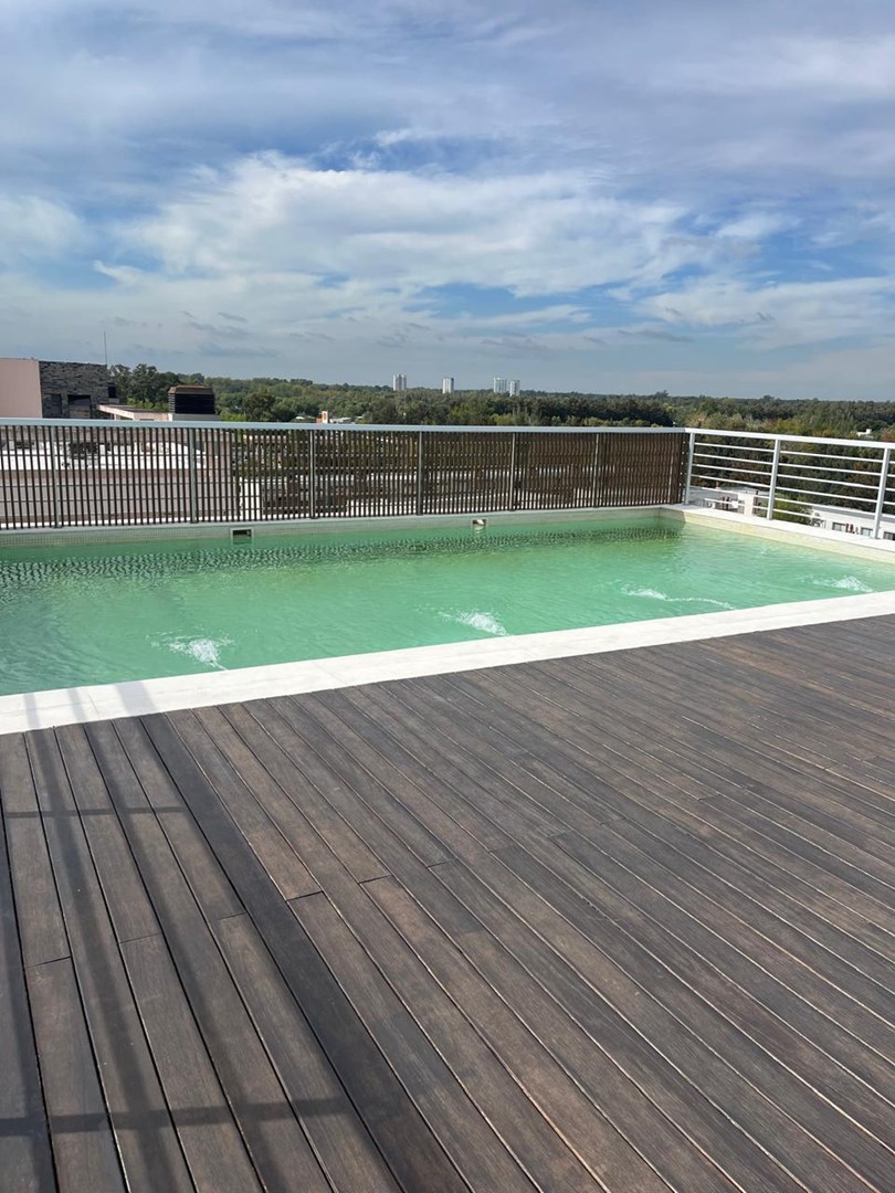 Departamento de 3 ambientes ubicado en el tercer piso con orientación norteste, con sol por la mañana lo que le brinda mucha luminosidad durante todo el día y una vista muy agradable. Living comedor con salida a balcón amplio ya que también el dormitorio principal tiene salida al mismo, ideal para disfrutar. Cocina integrada con buen espacio de guardado y diseño moderno. Tiene dos dormitorios cómodos, ambos con placard de pared a pared, uno de ellos como se comentó anteriormente con salida al balcón. Ambos comparten un baño completo. El departamento se destaca por su muy buena capacidad de guardado en todos sus ambientes. Incluye cochera cubierta y baulera, aportando mayor comodidad y espacio adicional. Las expensas incluyen tasa municipal y agua. El edificio Sky Roof ofrece un concepto moderno dentro de Nordelta, con excelentes amenities que incluyen: Piscina en terraza con una vista increíble, solarium, Terraza con vistas abiertas y lugar de parrillas para eventos, SUM para reuniones y eventos. Está ubicado a metros del centro comercial, y cerca de todo, con salida rápida a los accesos.